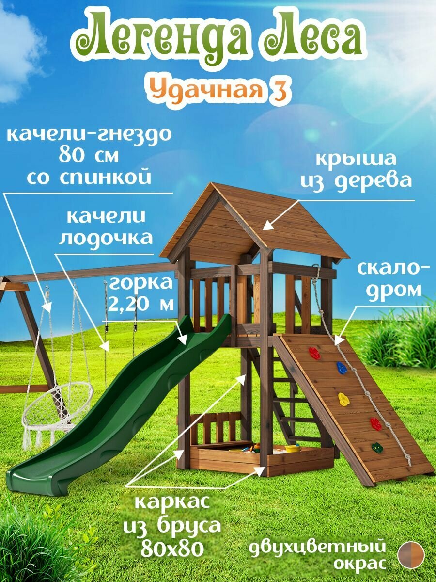 10 цен на Детская площадка легенда леса удачная 3 Золотой Тик-Орех со скалодром и горкой 2,2м для улицы окрашенная / Игровой комплекс для дачи