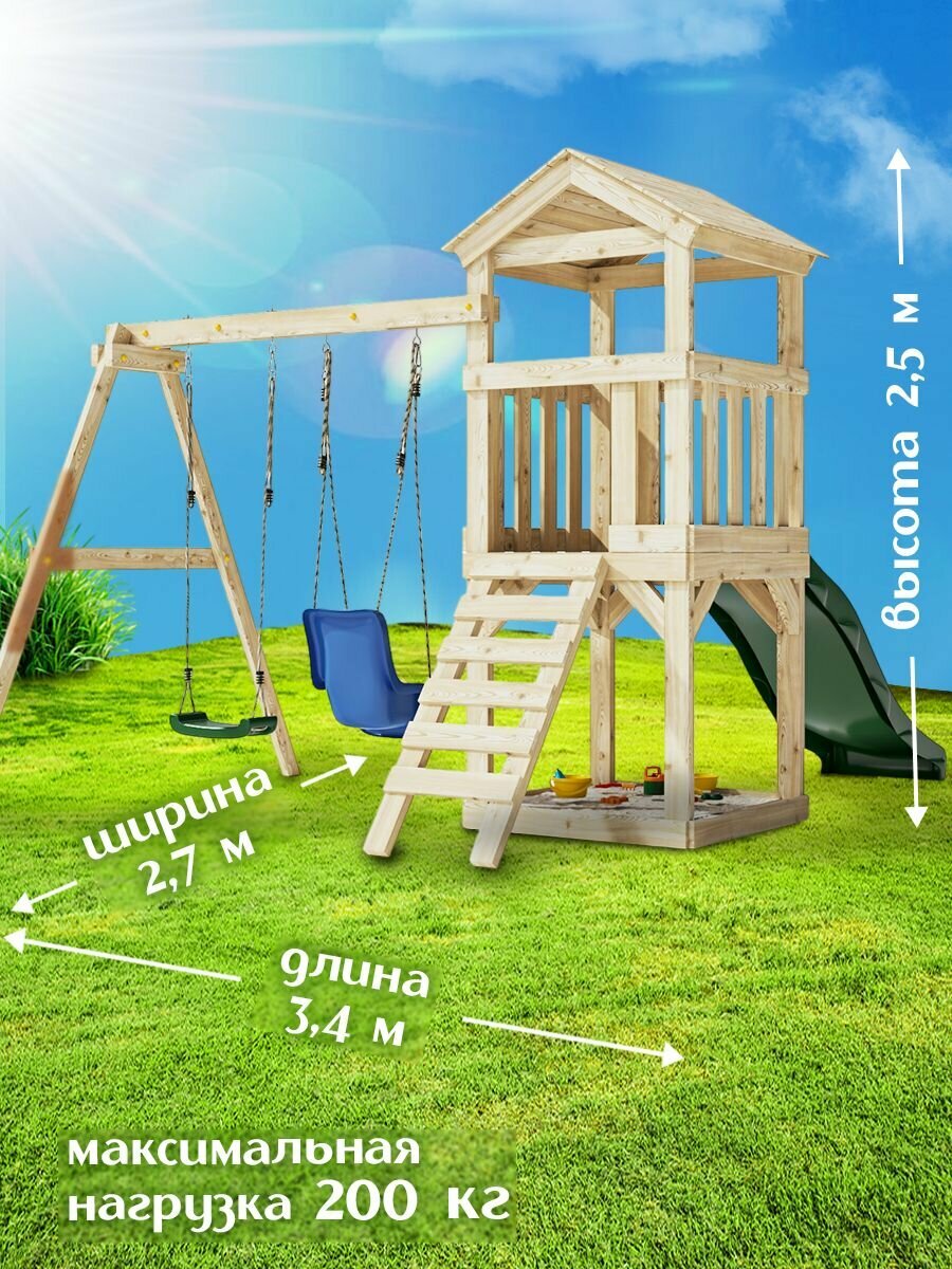 | В комплекте | домик, качели, лестница, песочница, Игровая веранда, Крыша, Прямая горка |