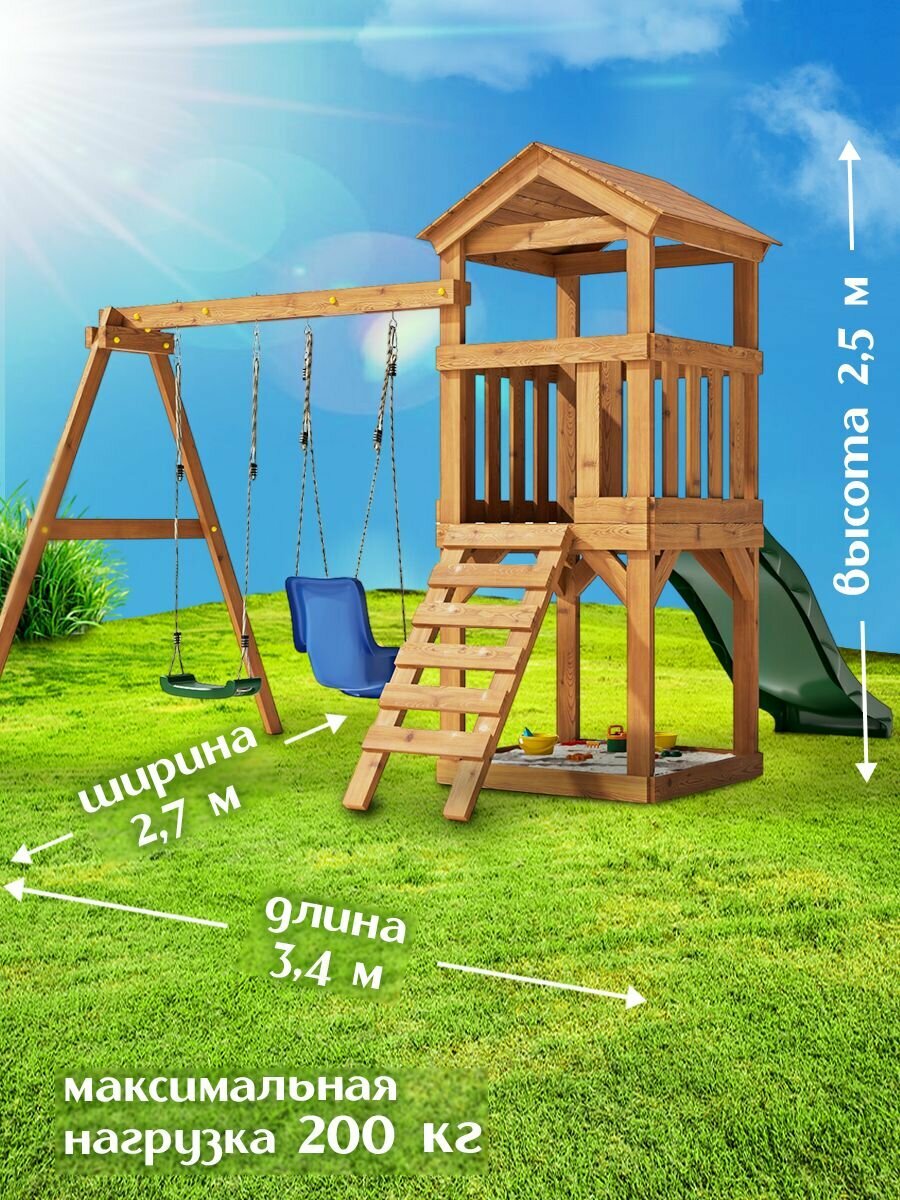 Детская площадка легенда леса стандарт 1 Золотистый Тик с качелями и горкой 1,75м для улицы / Игровой комплекс детский информация: