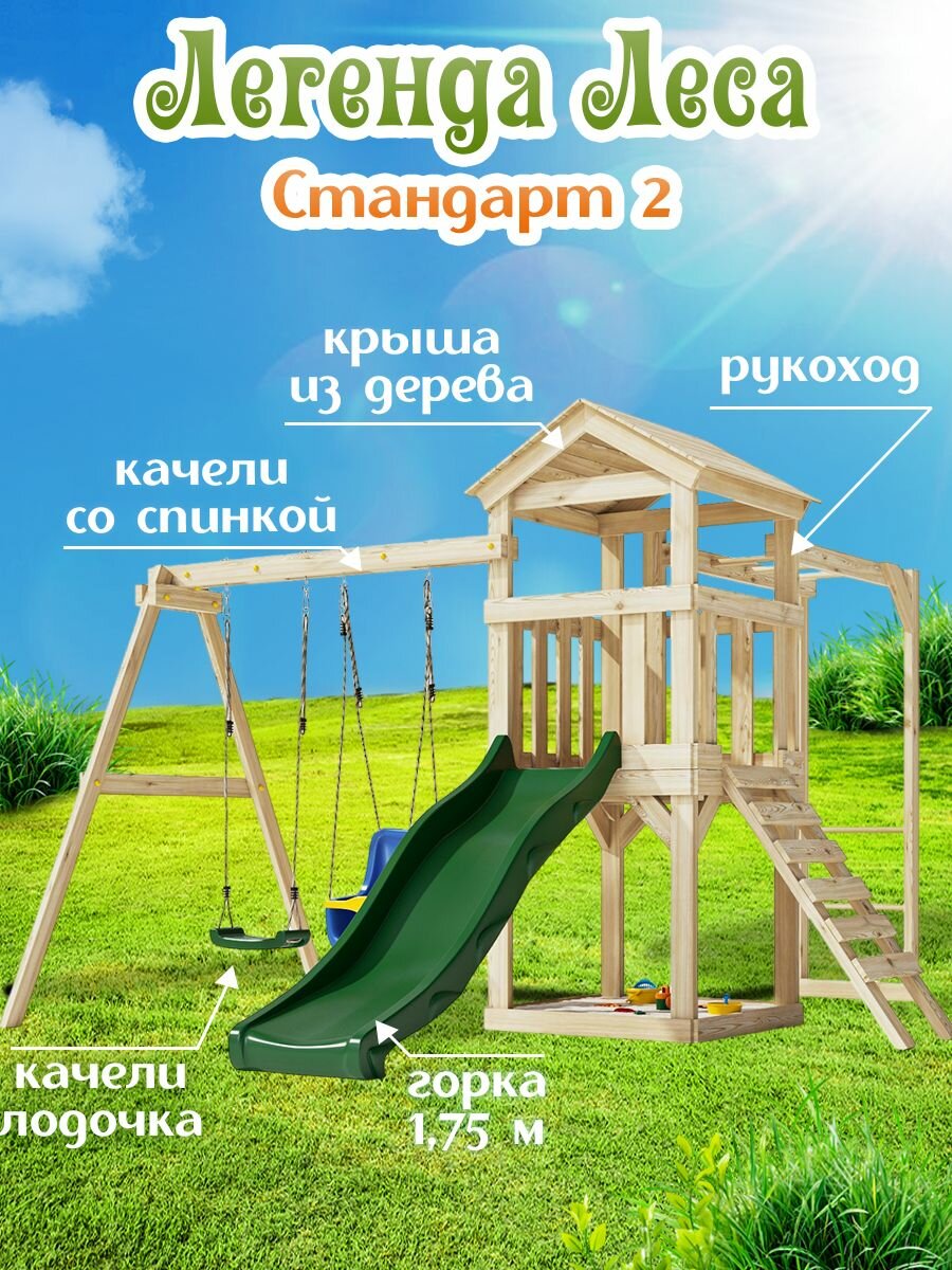 Детская площадка легенда леса стандарт 1 с качелями и горкой 1,75м для улицы / Игровой комплекс детский