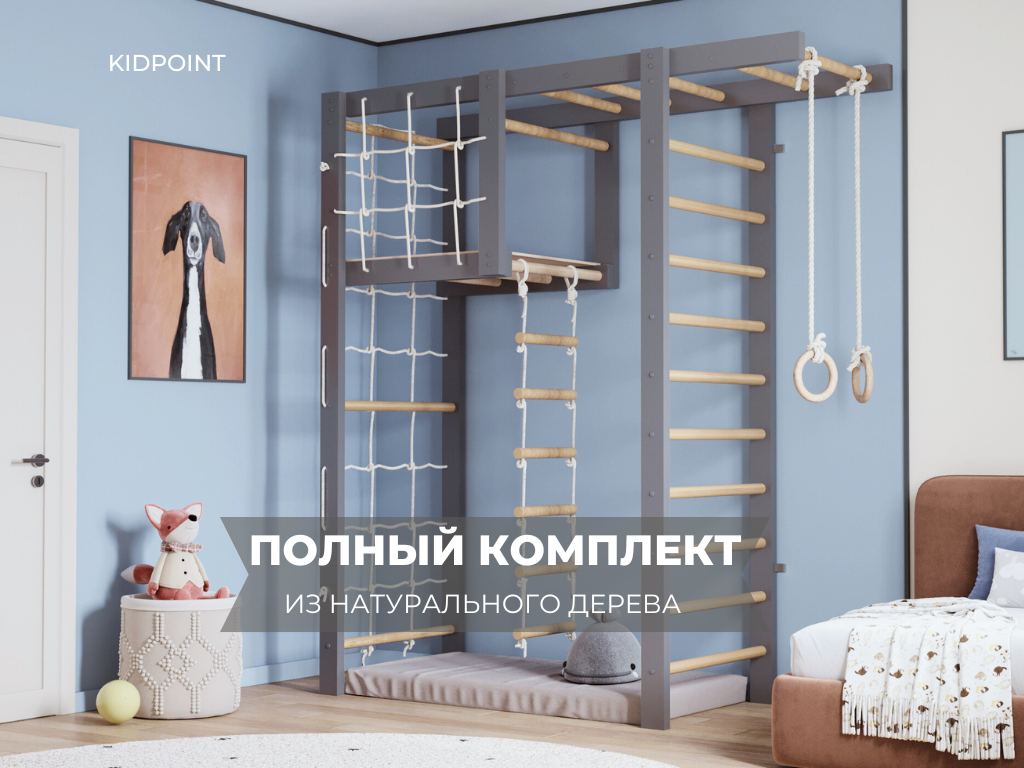 Отзывы на Спортивный комплекс KidPoint J4, до 100 кг, от 3 до 14 лет, дерево, серый