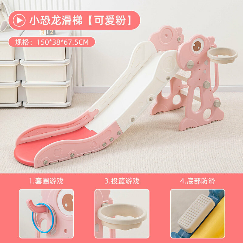 Горка детская "Динозавр", складная, многофункциональная, с мячом и корзиной, розовая информация: