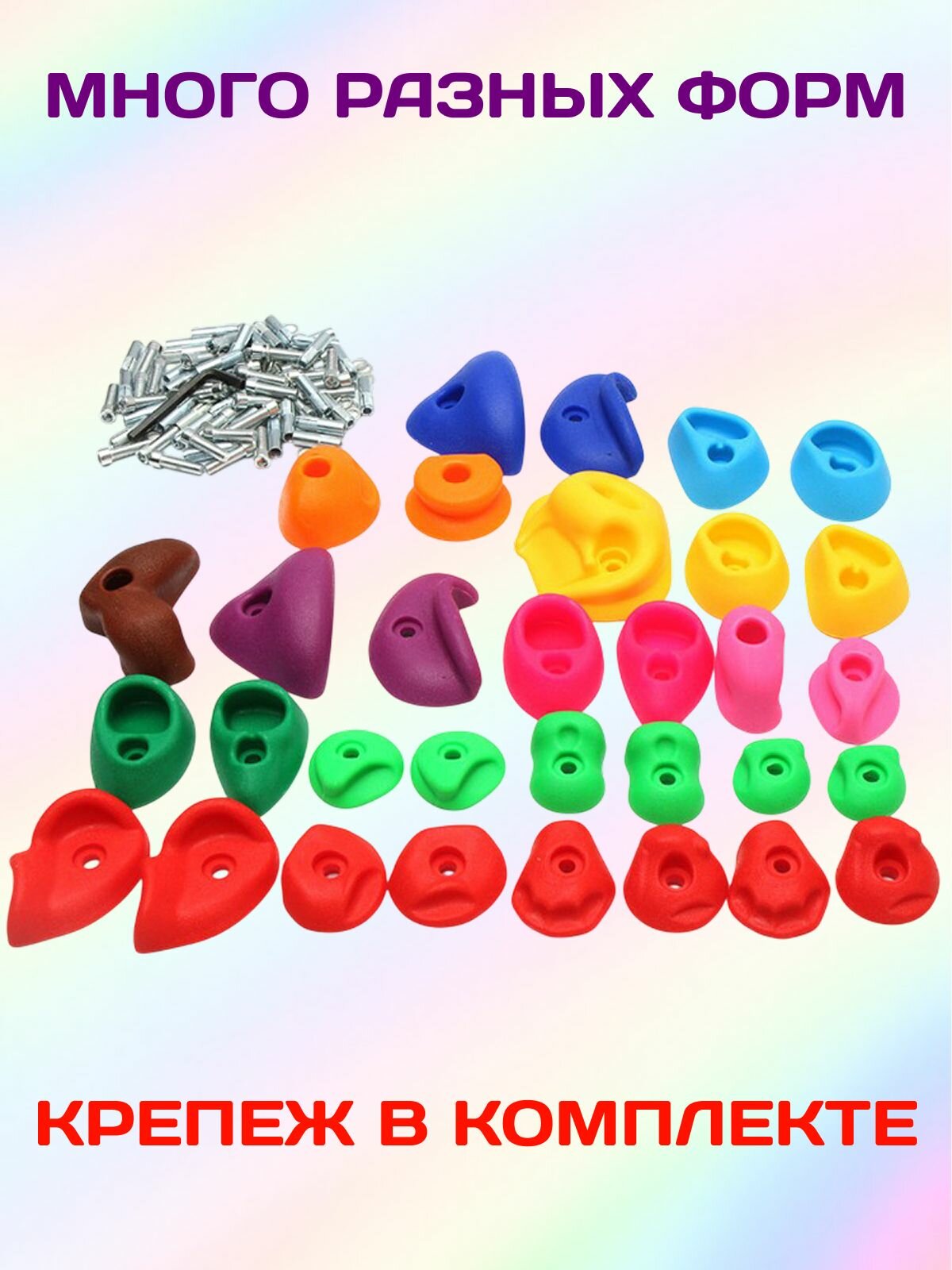 10 цен на Зацепы для скалодрома 32 шт. разноцветные, крепеж в комплекте