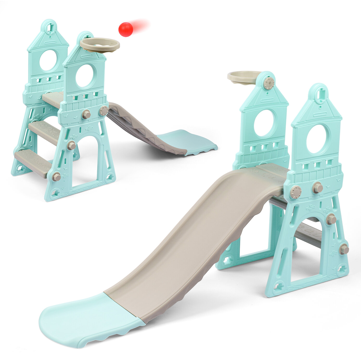 10 цен на Горка детская пластиковая с баскетбольным кольцом "Башня", для детей 1.5-4 лет, мятный цвет