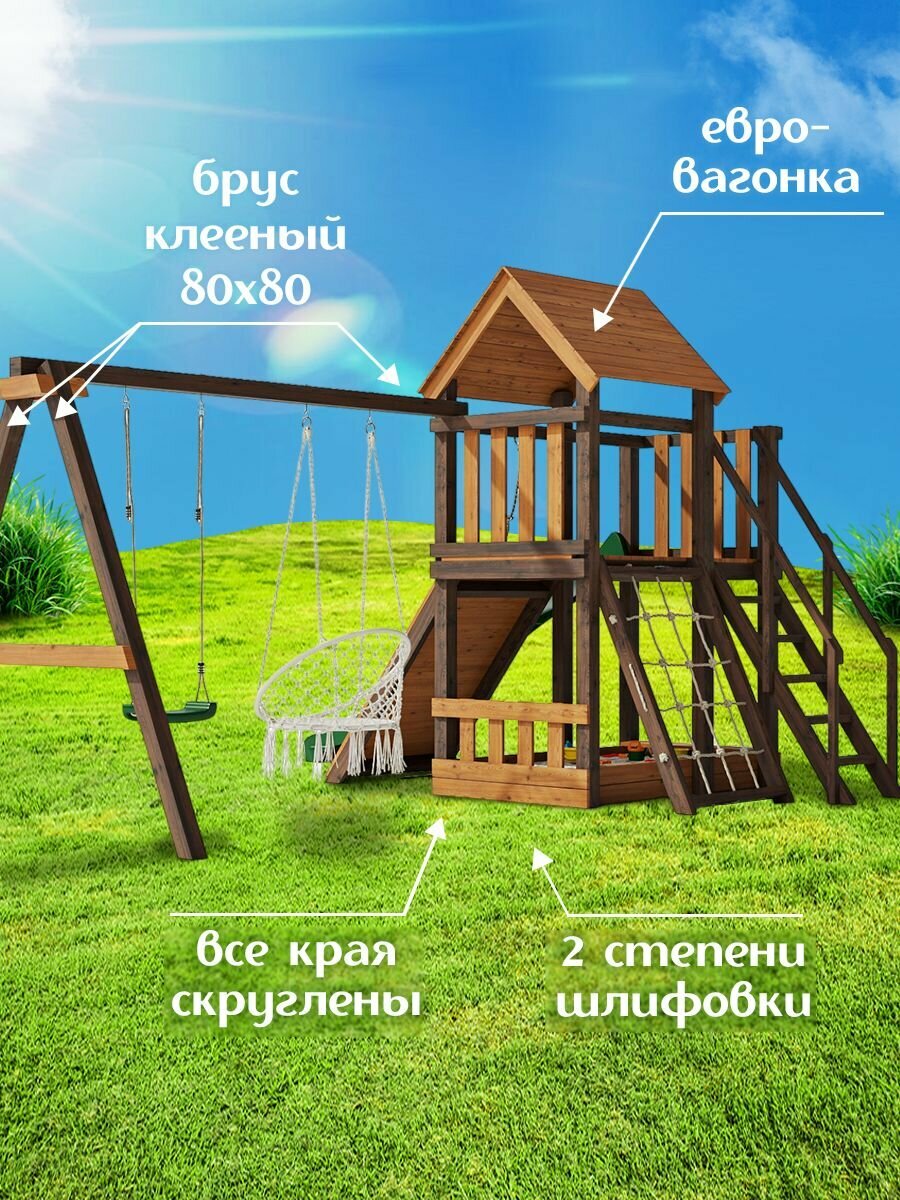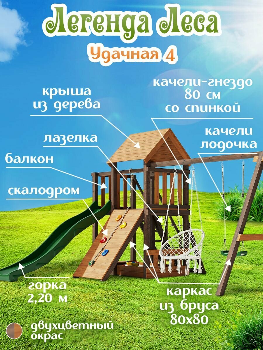 10 цен на Детская площадка легенда леса удачная 4 Золотой Тик-Орех окрашенная с лазелкой, скалодромом и горкой 2,2 метра для улицы