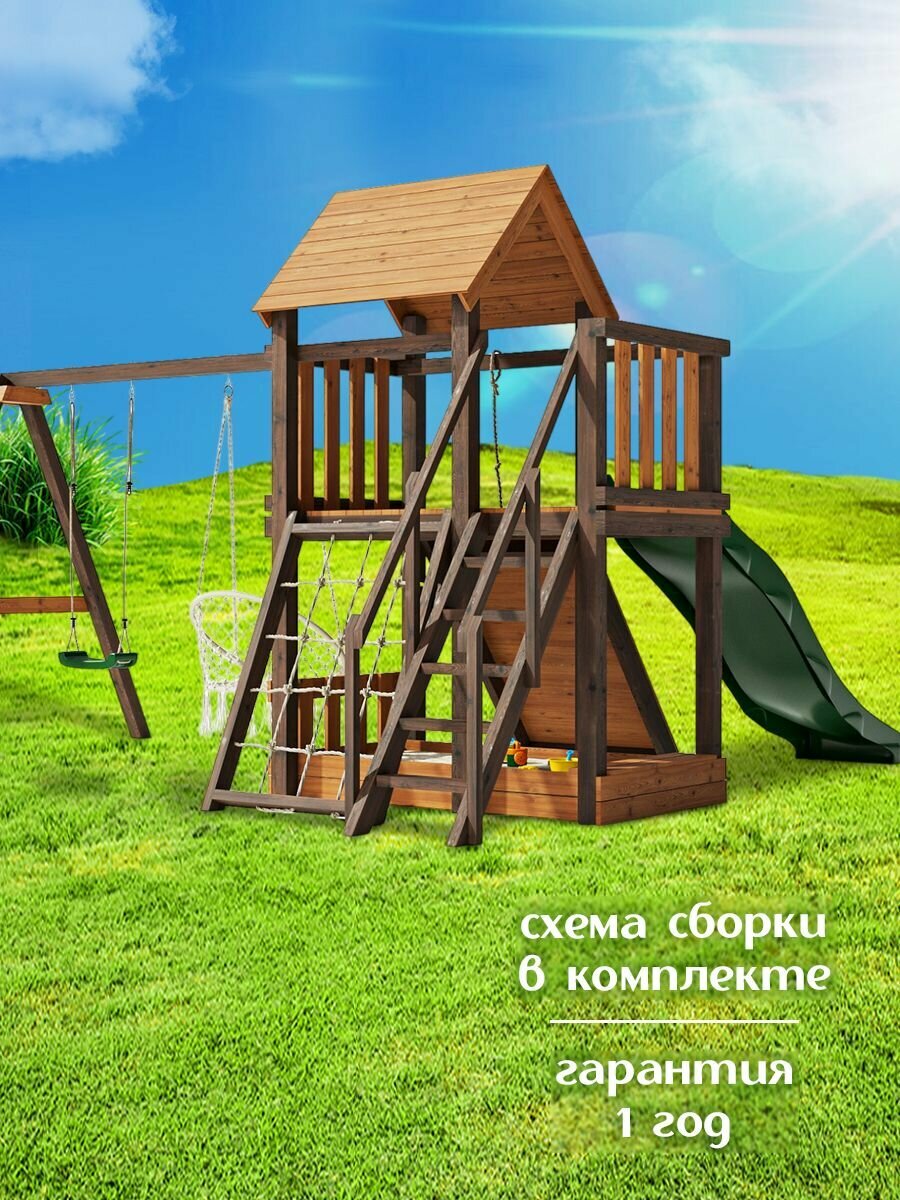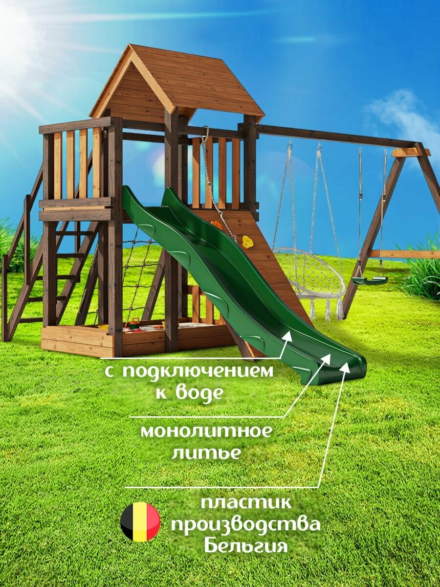 Детская площадка легенда леса удачная 2 Золотой Тик-Орех с лазелкой и горкой 2,2м для улицы окрашенная / Игровой комплекс для дачи