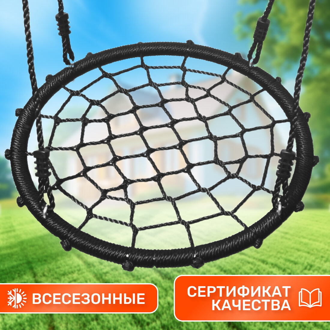 Отзывы на Детские качели гнездо National Tree Company, садовые круглые качели для улицы и дачи, диаметр 100 см, цвет черный