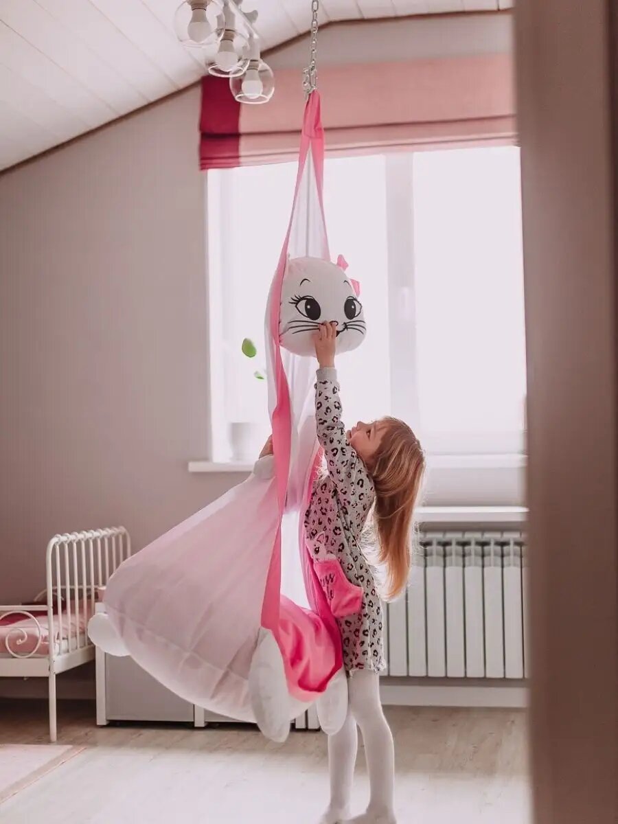 Отзывы на Детское подвесное кресло качели Кокон Кошечка от бренда Покачайка, двухцветное, бескаркасное