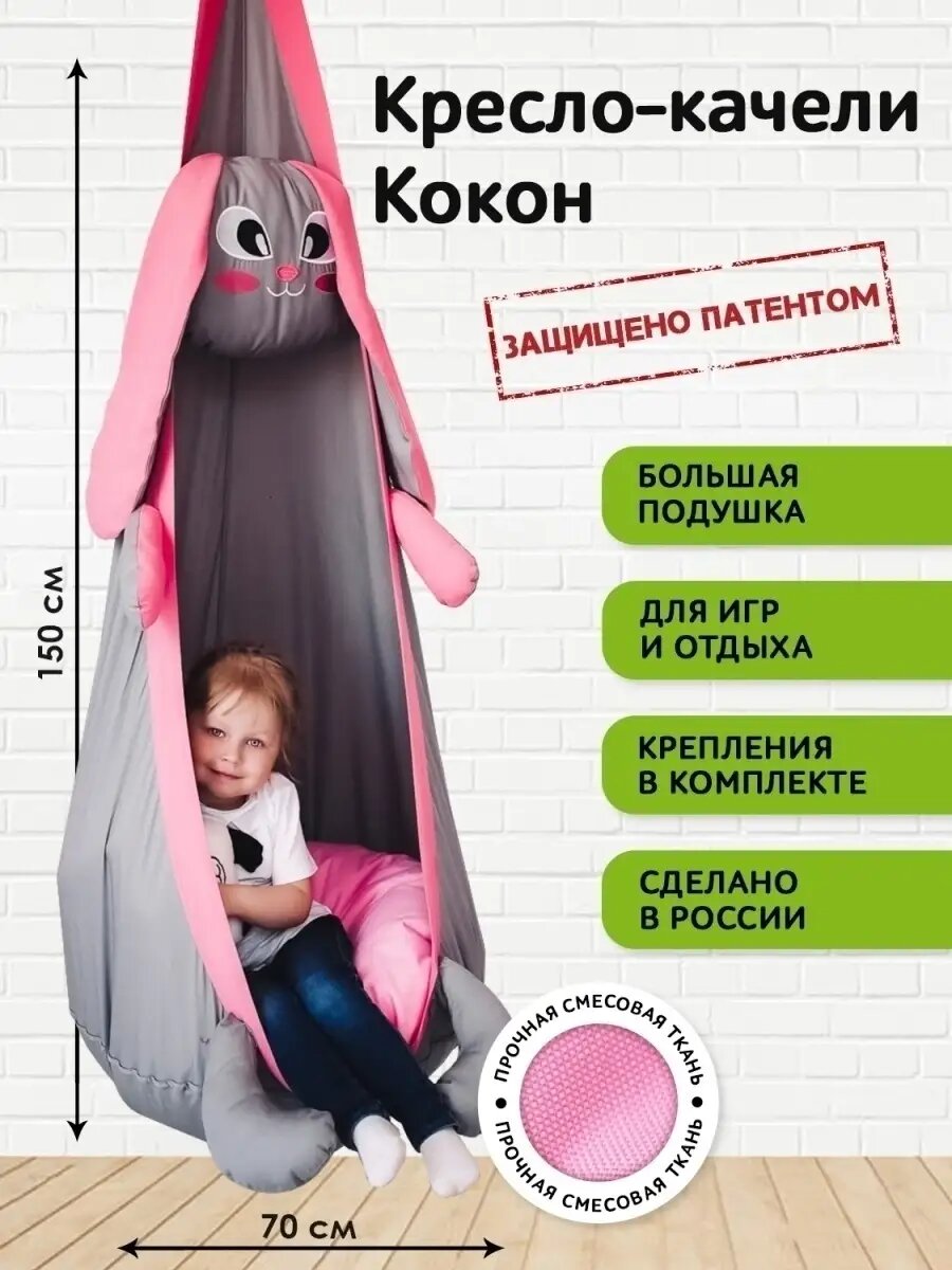 Детское подвесное кресло-качели "Кокон Зайка" от бренда "Покачайка" информация: