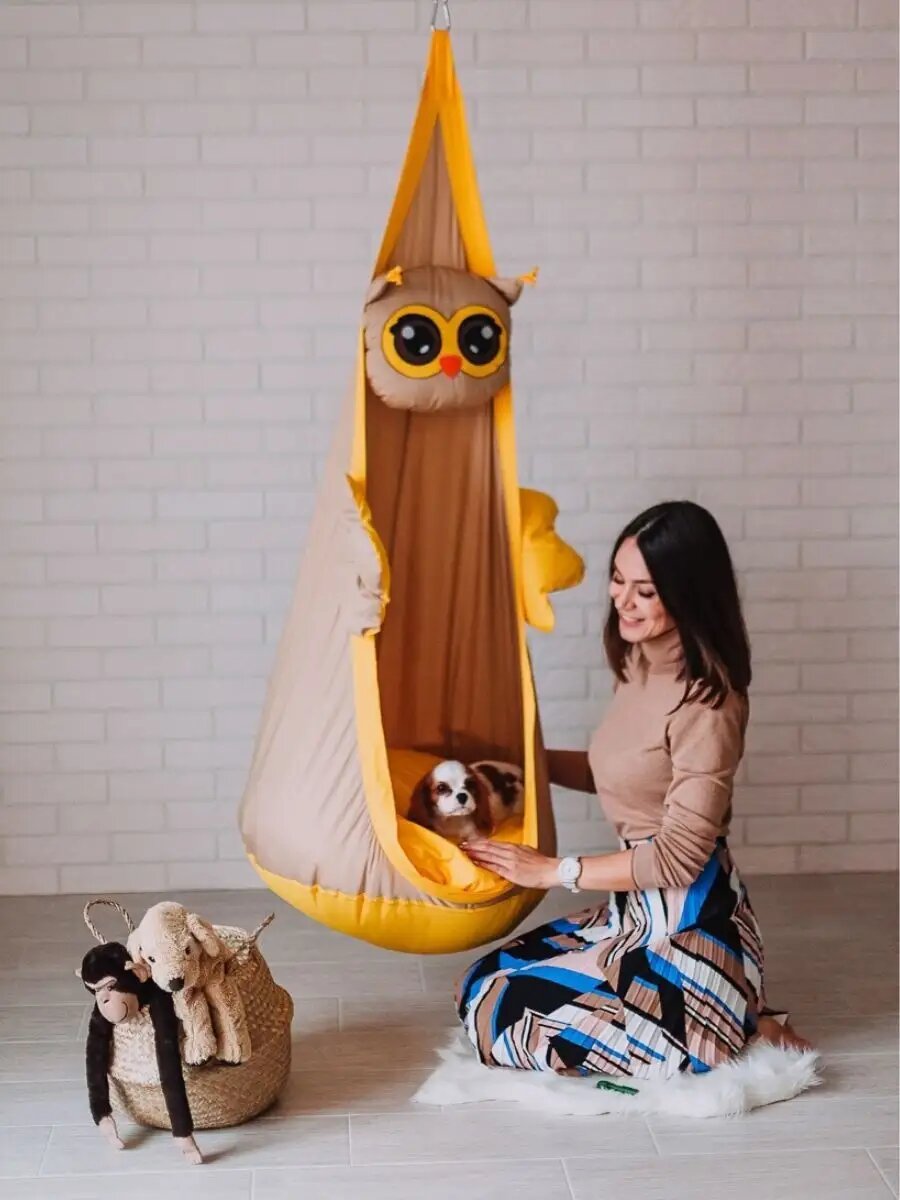 Детское подвесное кресло-качели "Кокон Совушка" от бренда "Покачайка"