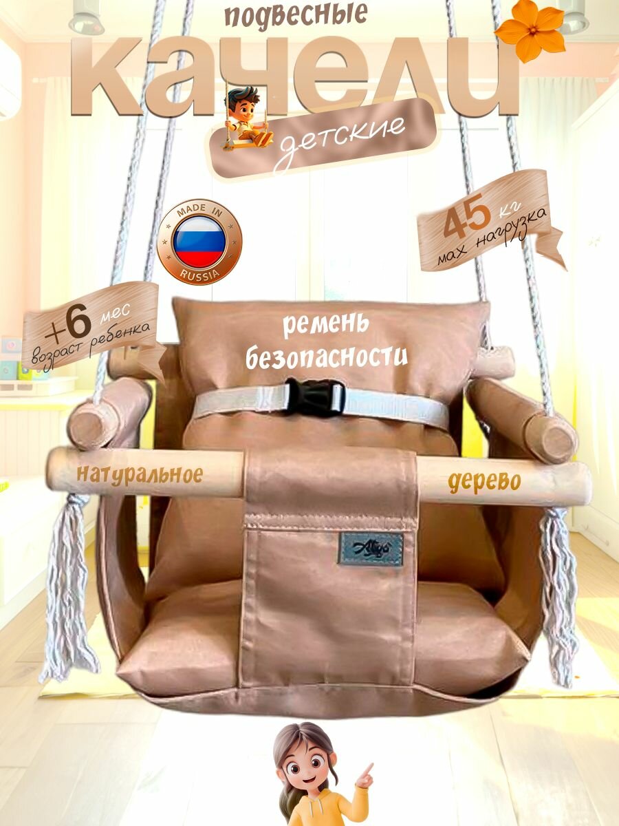 Детские качели Aliya, подвесные, натуральные материалы, максимальная нагрузка 45 кг информация: