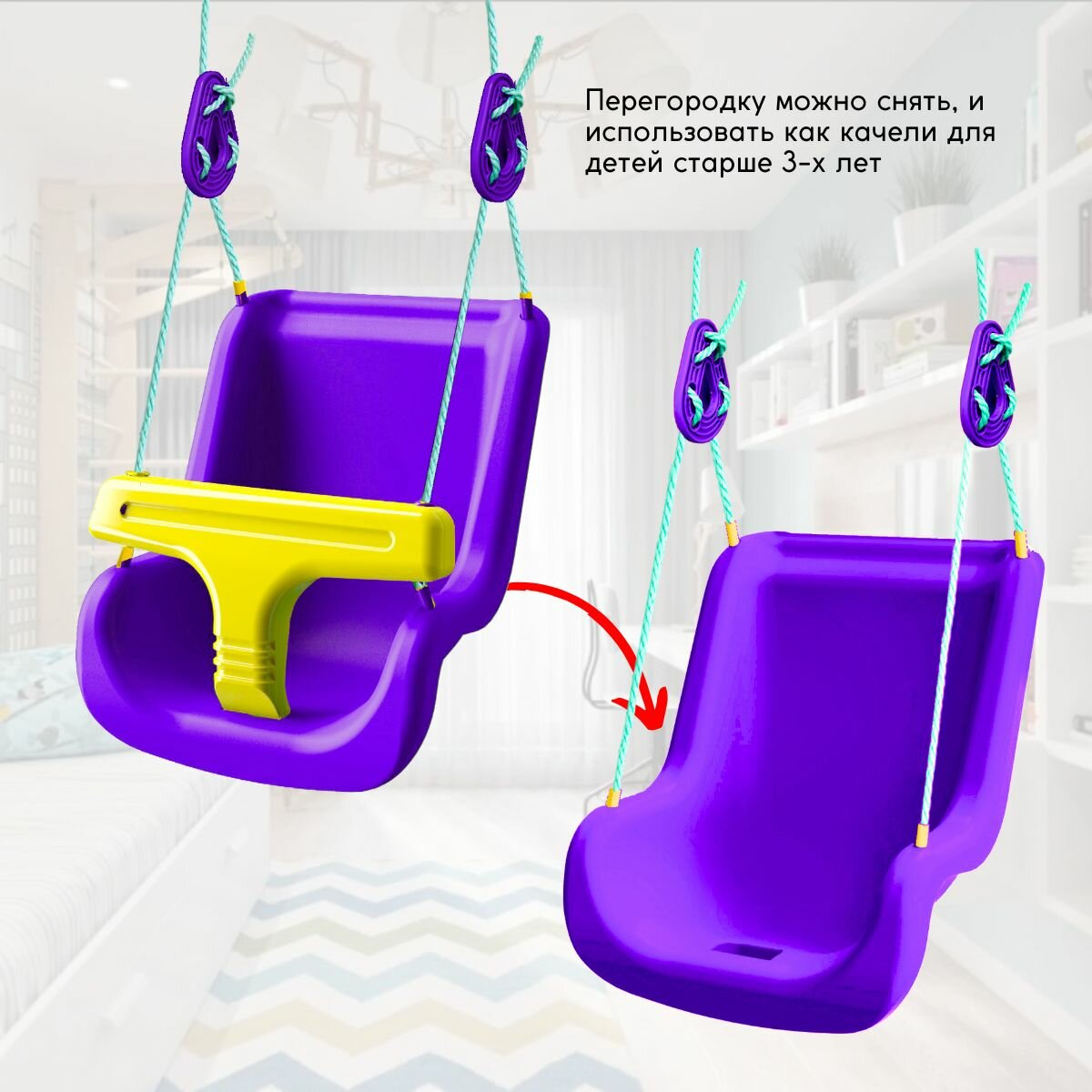 Качели подвесные детские со спинкой Leco для малышей до 3 лет фиолетовые информация: