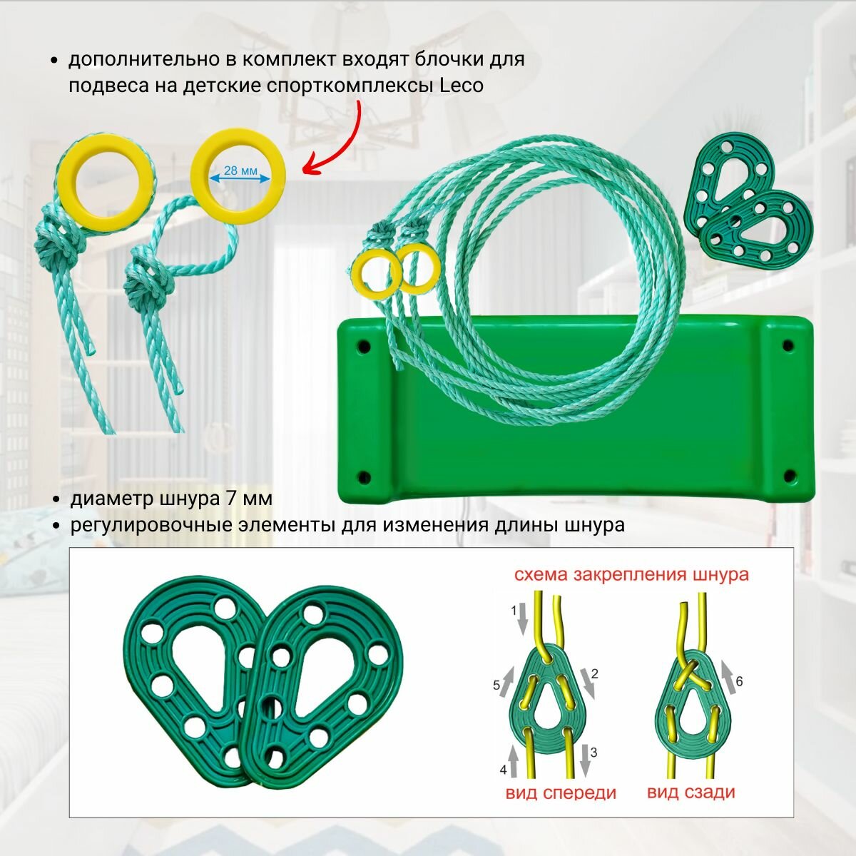 Набор из 3-х качелей подвесных детских Leco для детей от 5 лет зеленые информация: