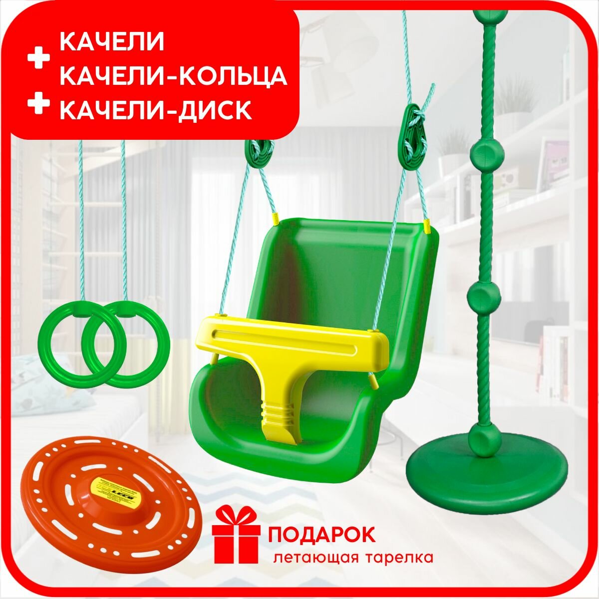Набор из 3-х качелей подвесных детских со спинкой Leco для малышей до 3 лет зеленые информация: