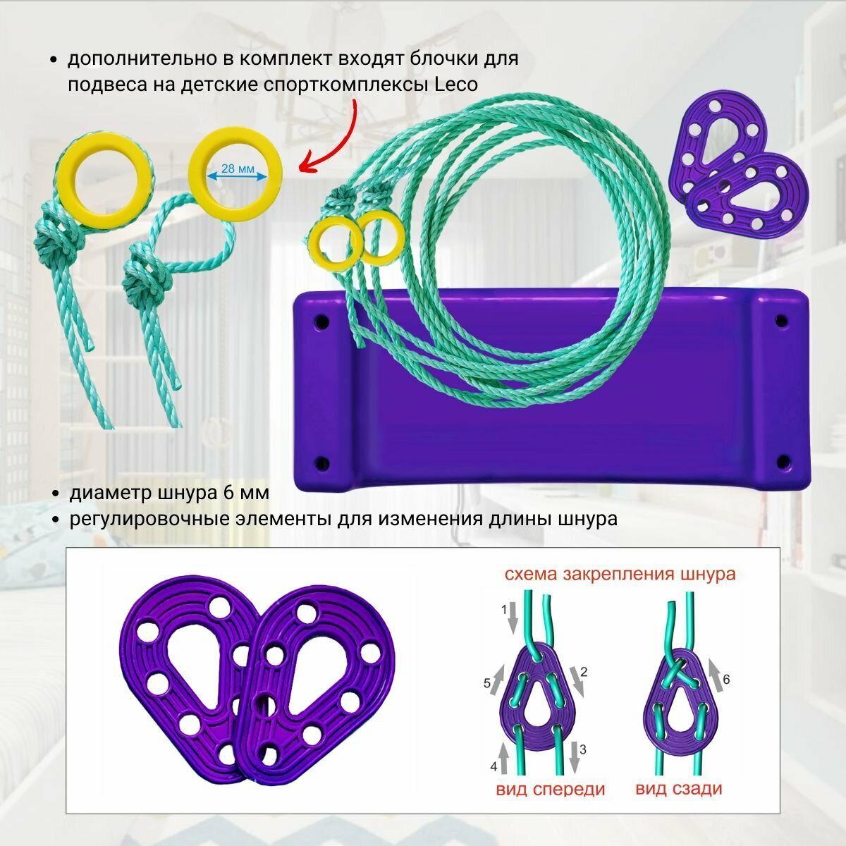 Качели подвесные детские Leco для детей от 5 лет фиолетовые информация:
