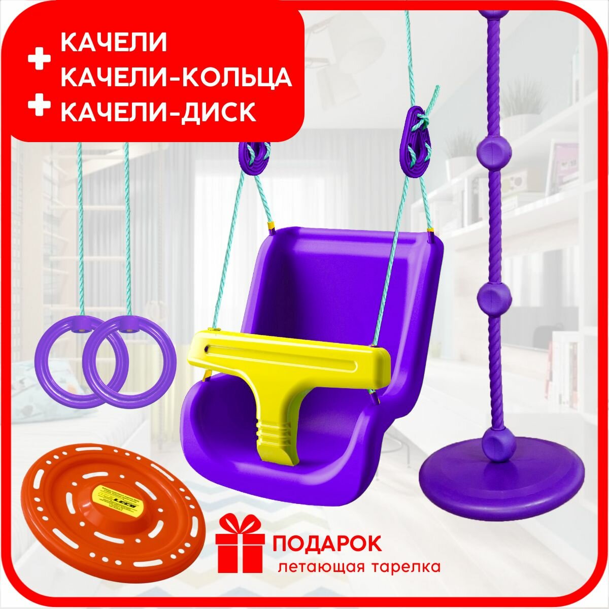 Отзывы на Набор из 3-х качелей подвесных детских со спинкой Leco для малышей до 3 лет фиолетовые