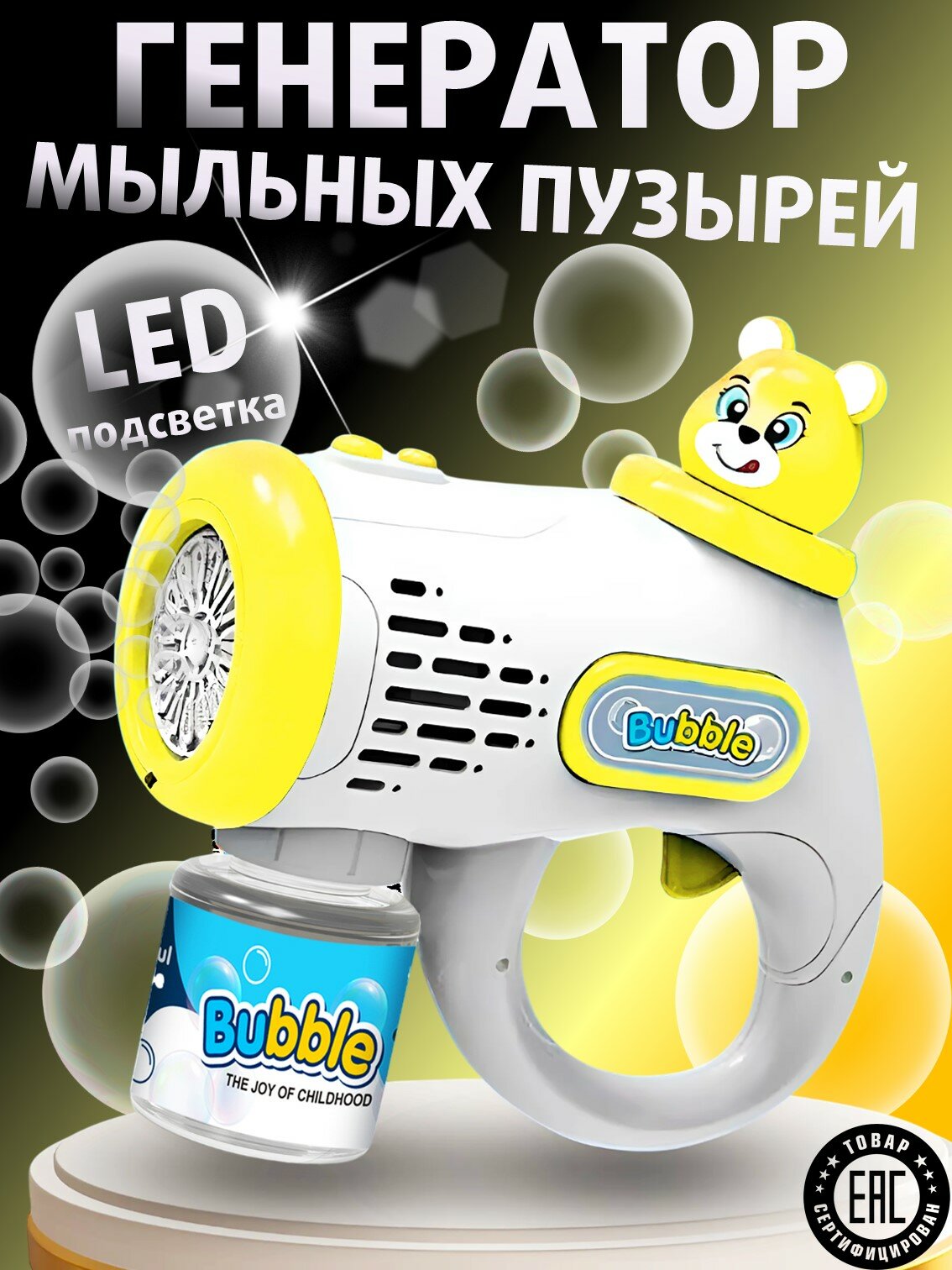 Генератор для мыльных пузырей на батарейках с подсветкой, детский мыльный пистолет. 1 250 ₽