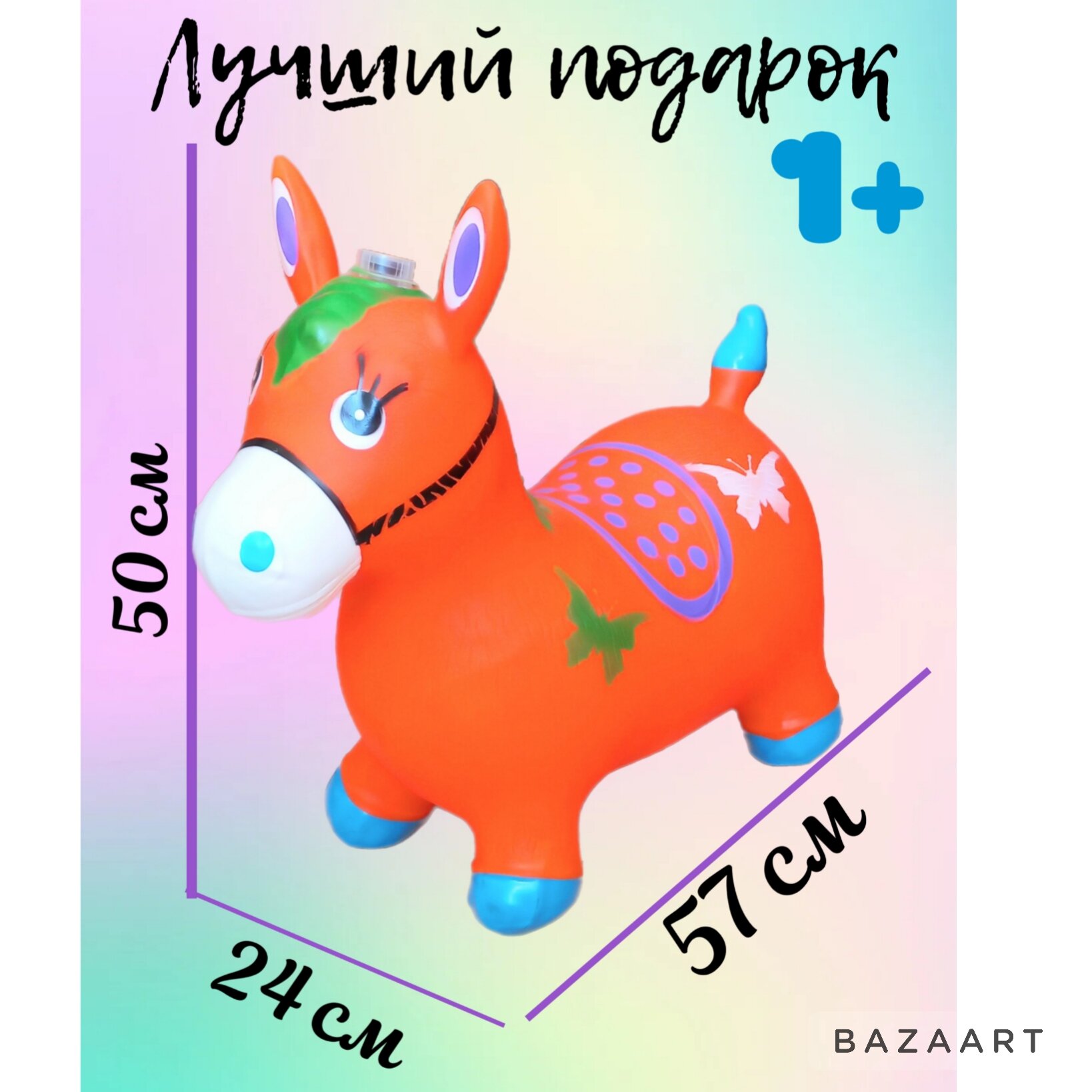 Отзывы на Прыгун-попрыгун "Ослик", резиновый, со звуком, оранжевый, 57 см x 24 см x 50 см