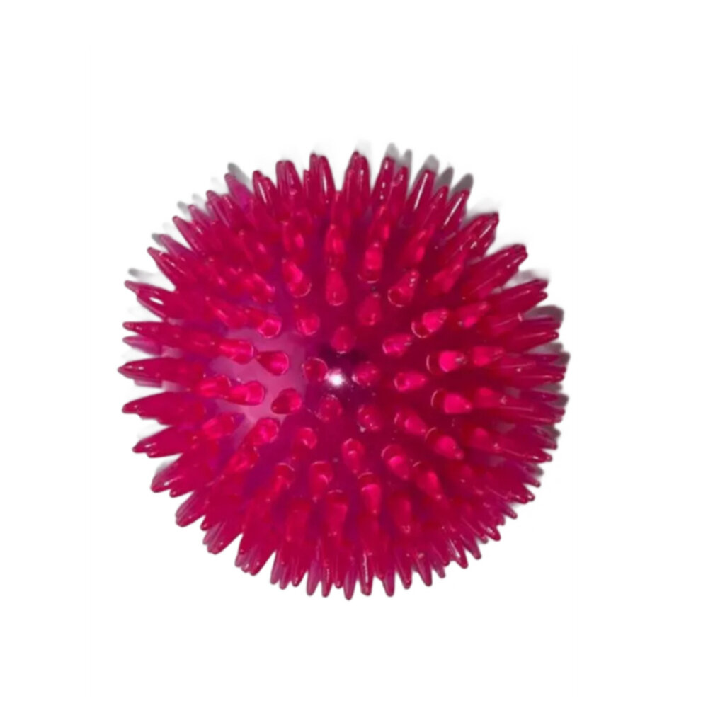 Детский тактильный массажный мячик 10 см с шипами, светящийся с пищалкой информация: