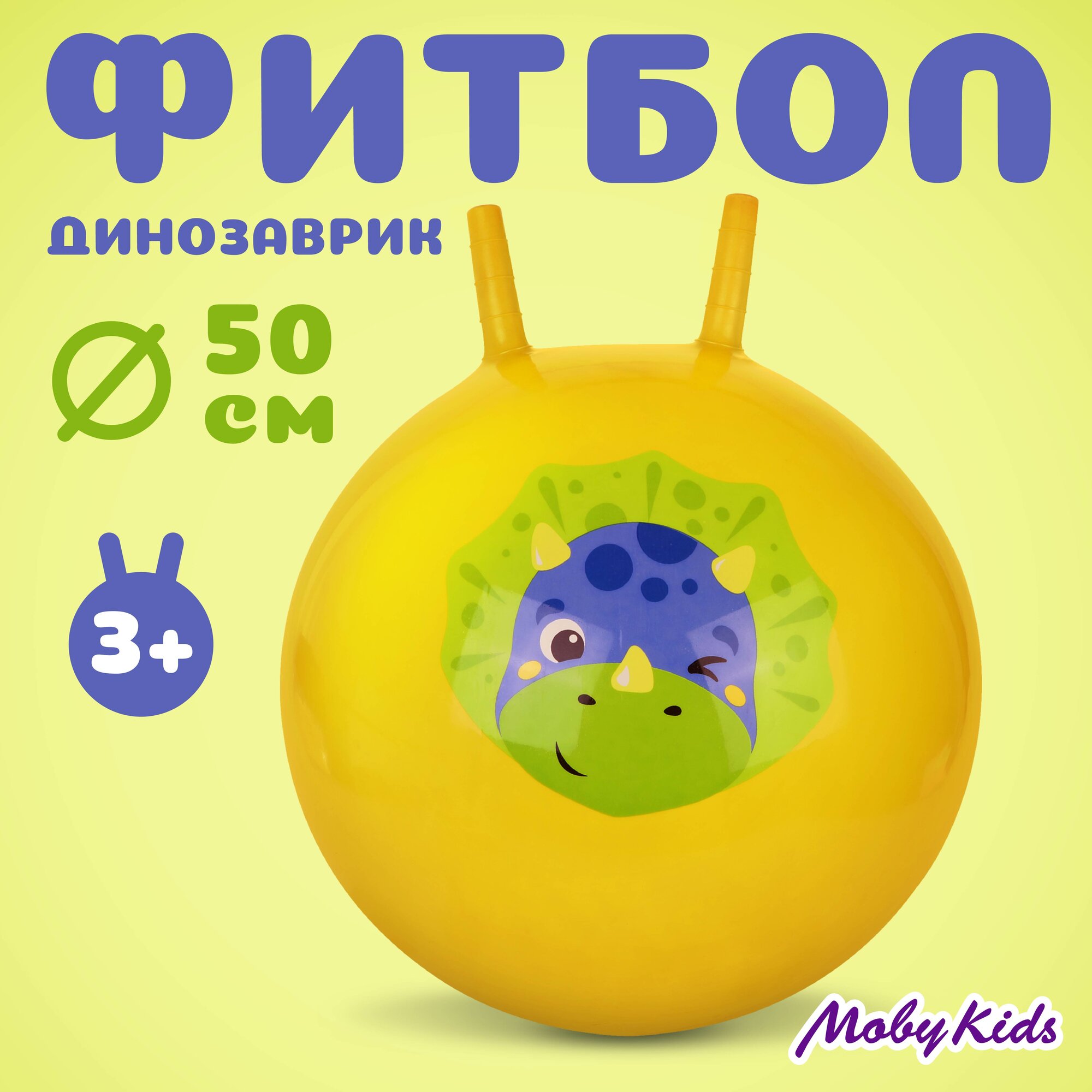 Отзывы на Попрыгун фитбол надувной мяч с ручками Moby Kids "Динозаврик", диаметр 50 см, желтый, для детей от 3 лет