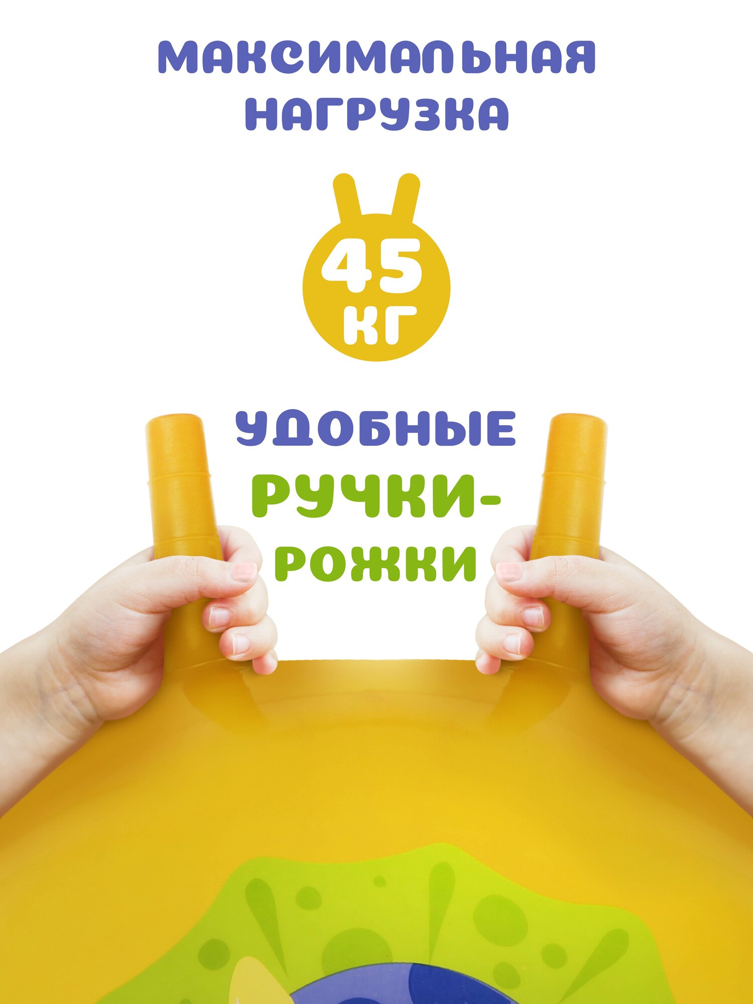 Попрыгун фитбол надувной мяч с ручками Moby Kids "Динозаврик", диаметр 50 см, желтый, для детей от 3 лет информация: