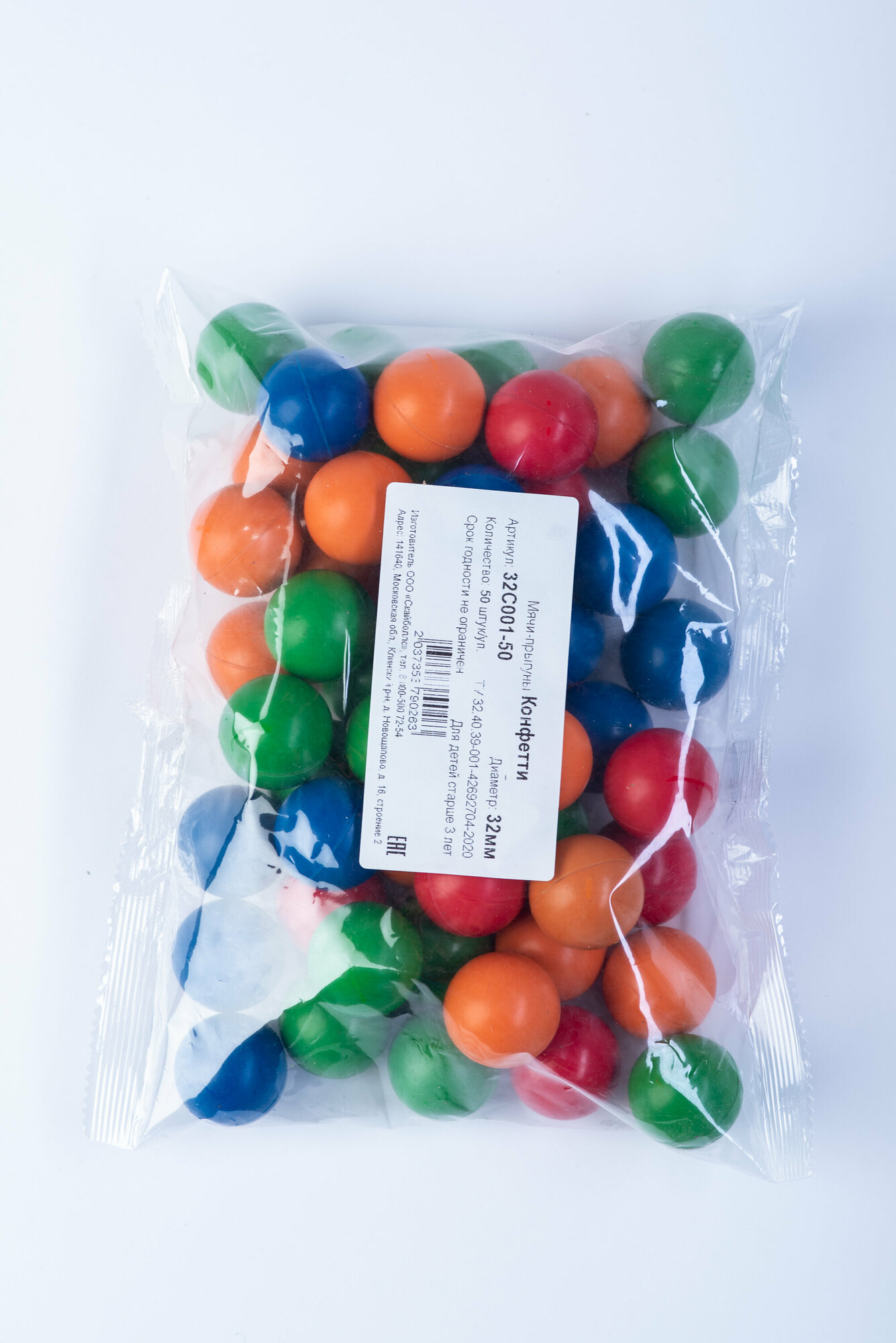 Мячи-попрыгуны Skyballs "Конфетти", каучук, диаметр 32 мм, 50 штук информация: