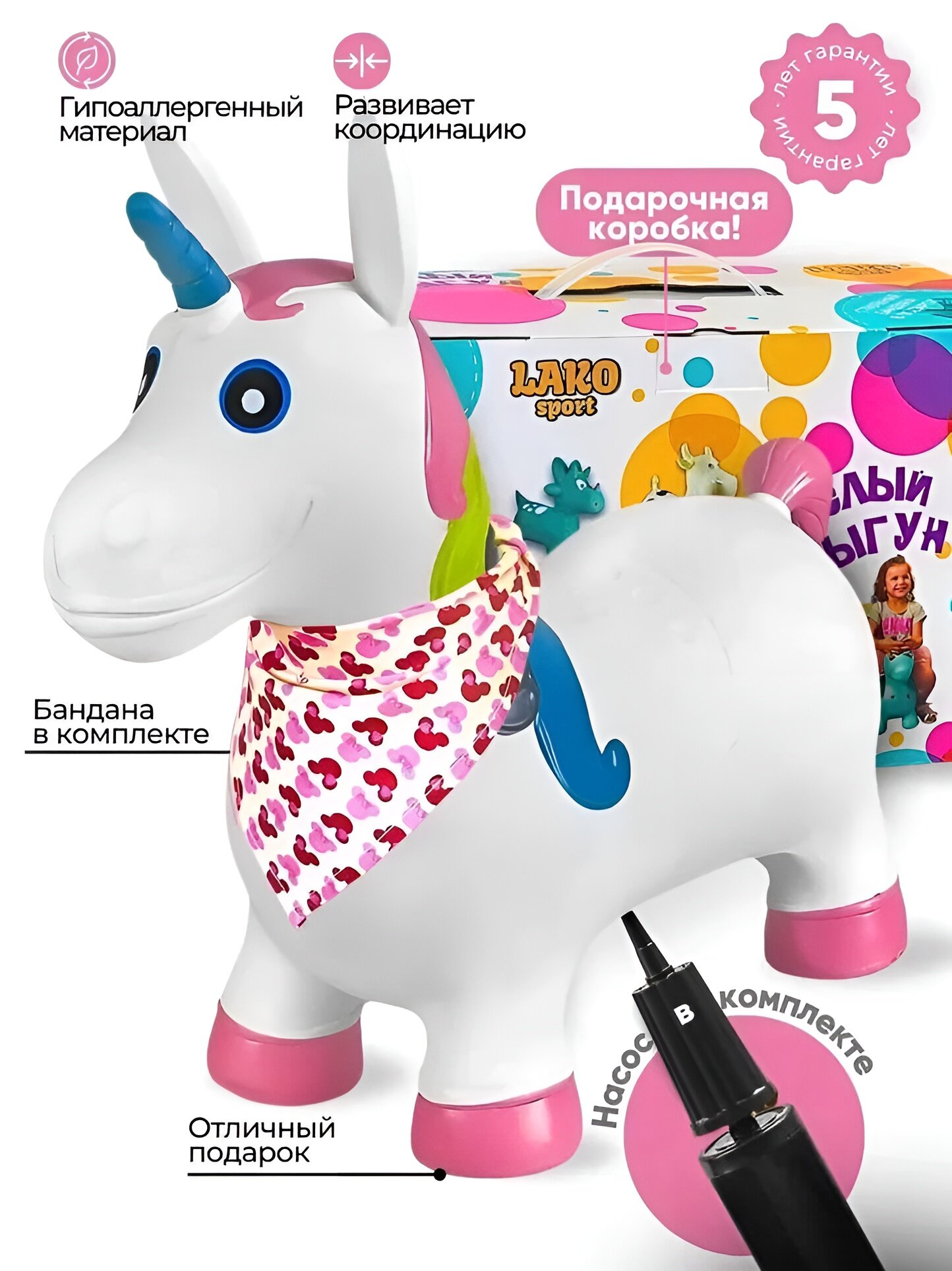 Отзывы на Прыгун Белый единорог Радуга, детская надувная развивающая игрушка-тренажер (в комплекте с насосом и чехлом)