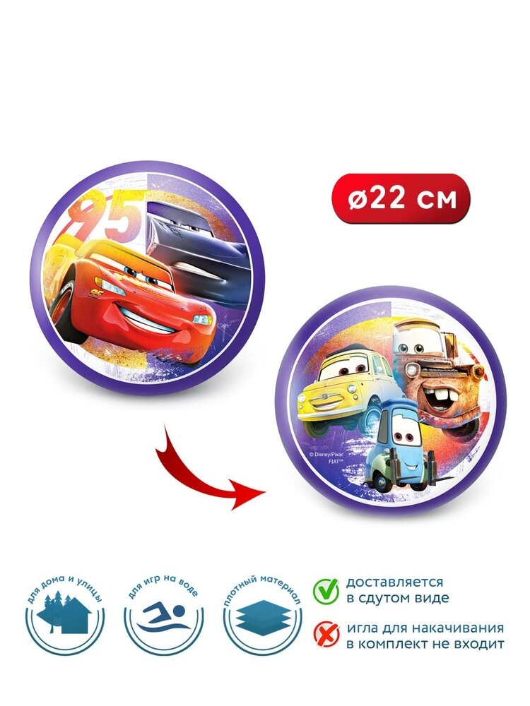 Детский надувной мяч, Мяч для мальчиков, Игровой мяч «Тачки», 22 см, ND Play информация: