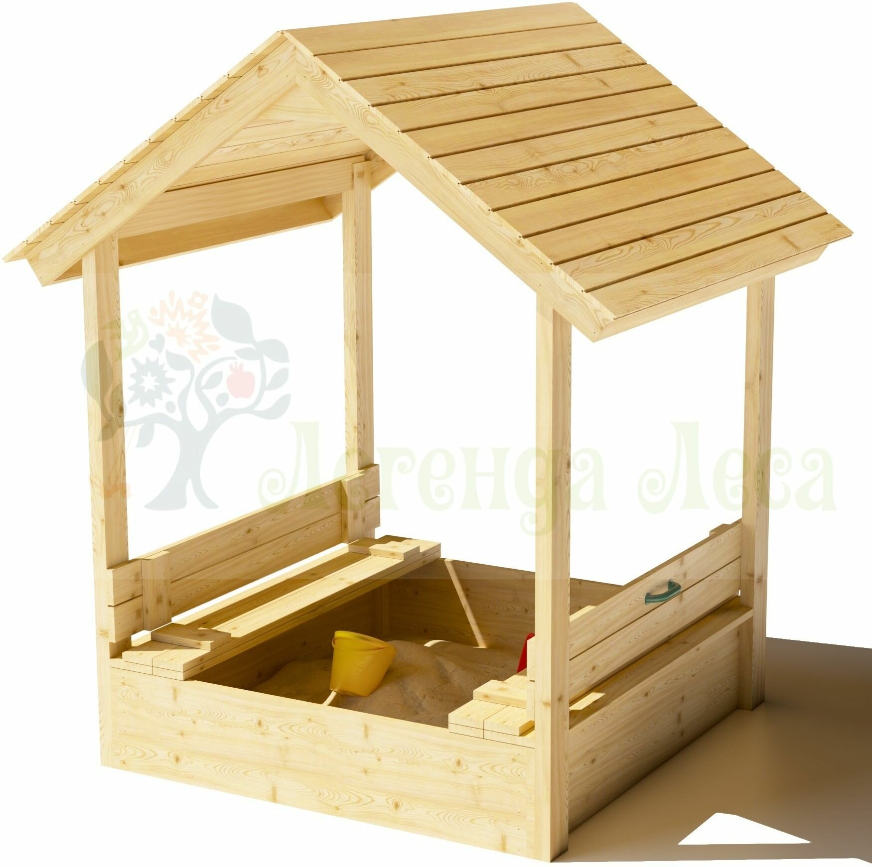 Песочница легенда леса с крышкой и крышей (без окраса) / Детская песочница с лавочками на улицу информация: