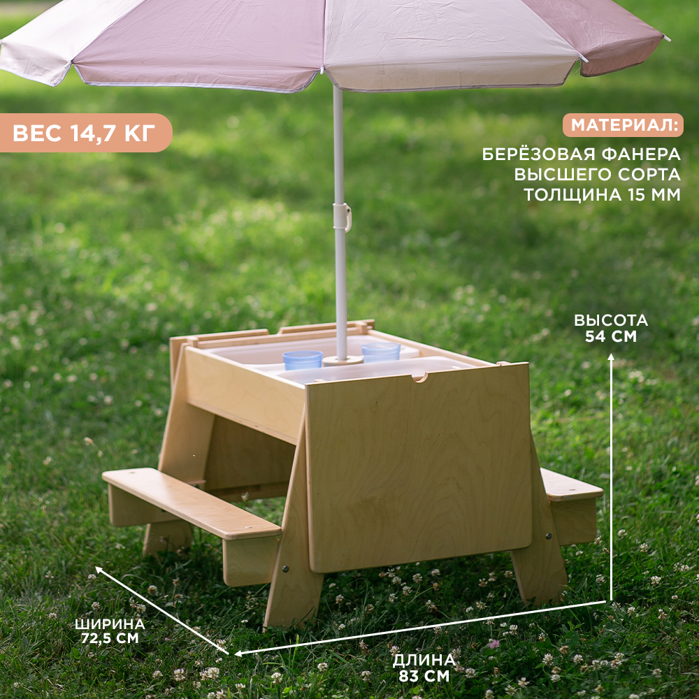 Детская песочница столик деревянная с крышкой для игр на улице и дома информация: