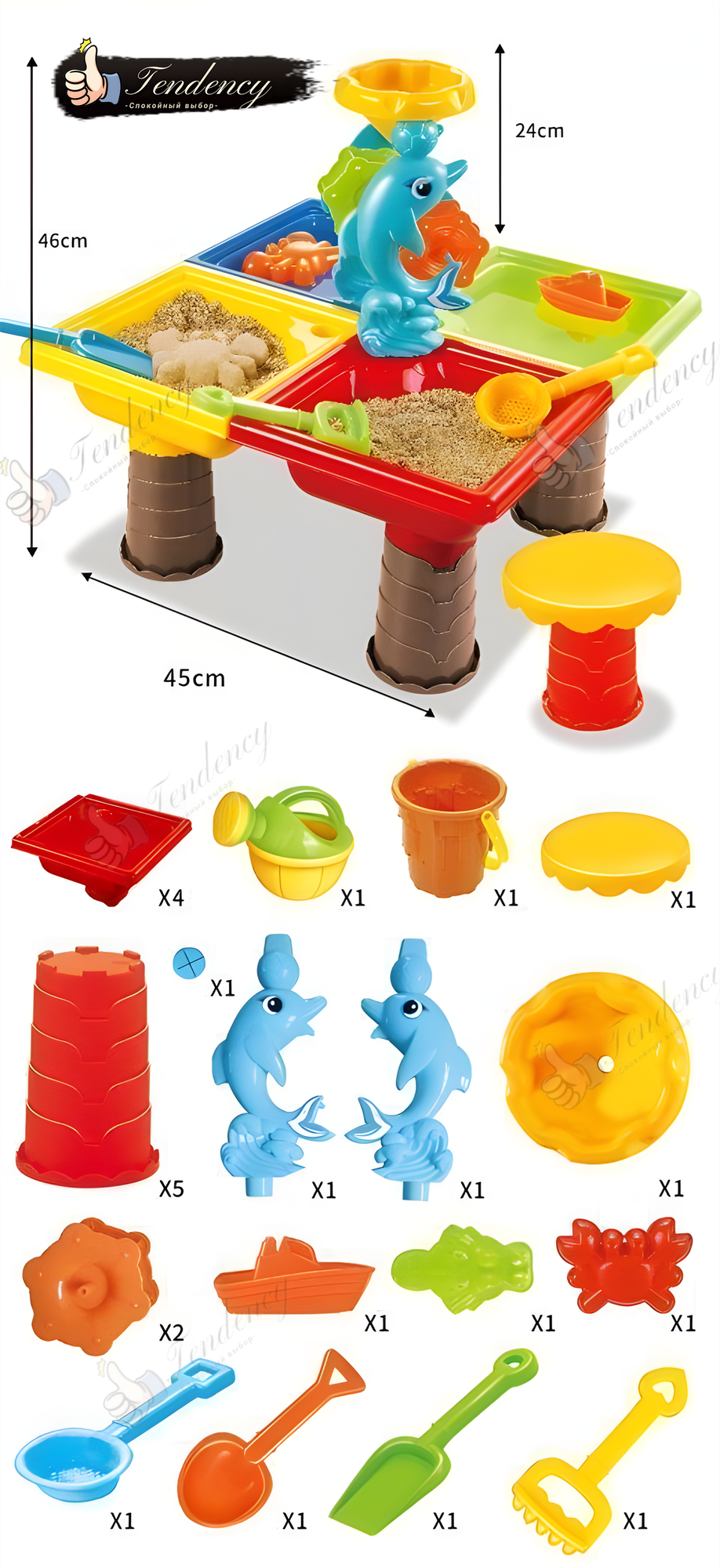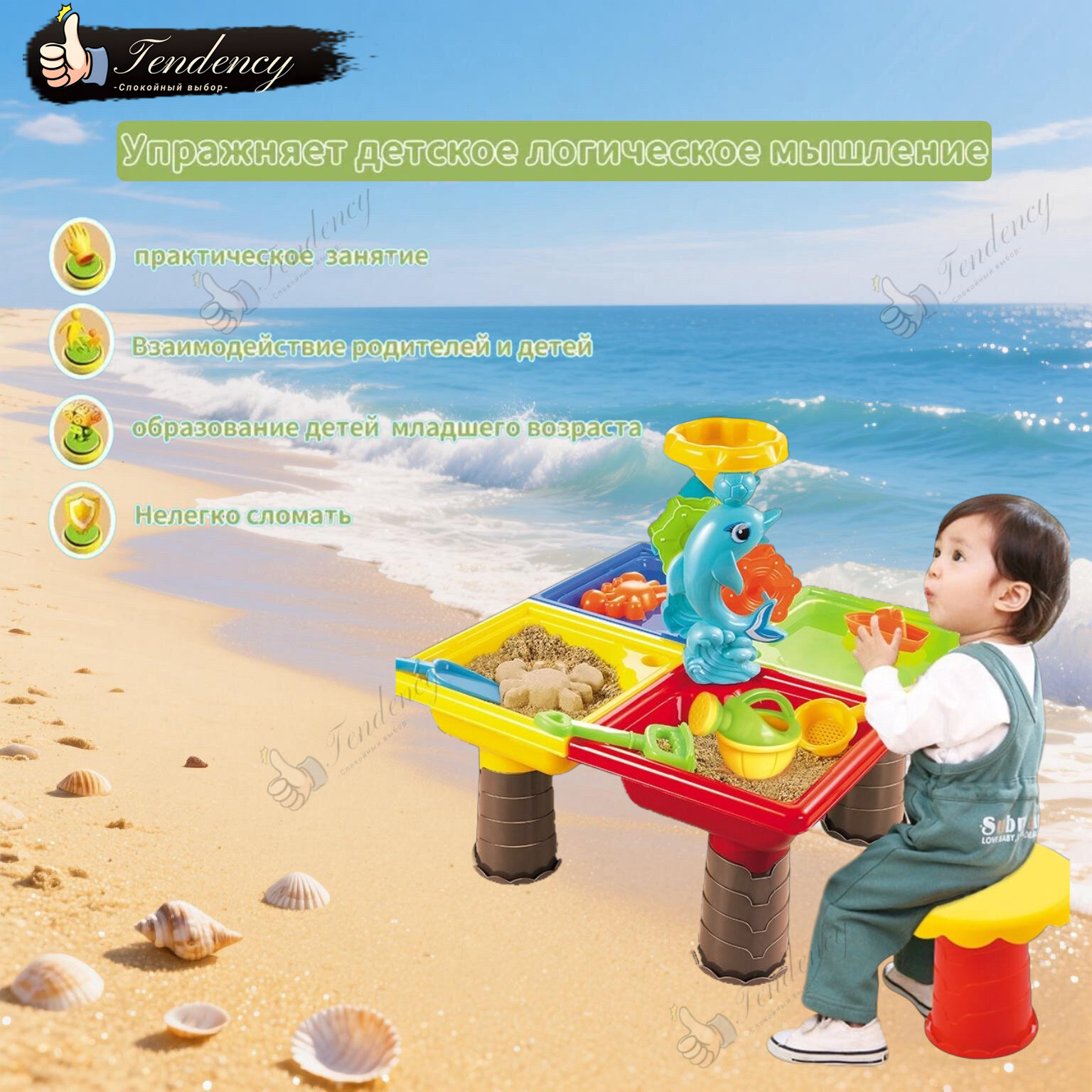 10 цен на Песочница детская на улицу, игровой набор "Дельфин" с четырехугольным столом, набор для песочницы
