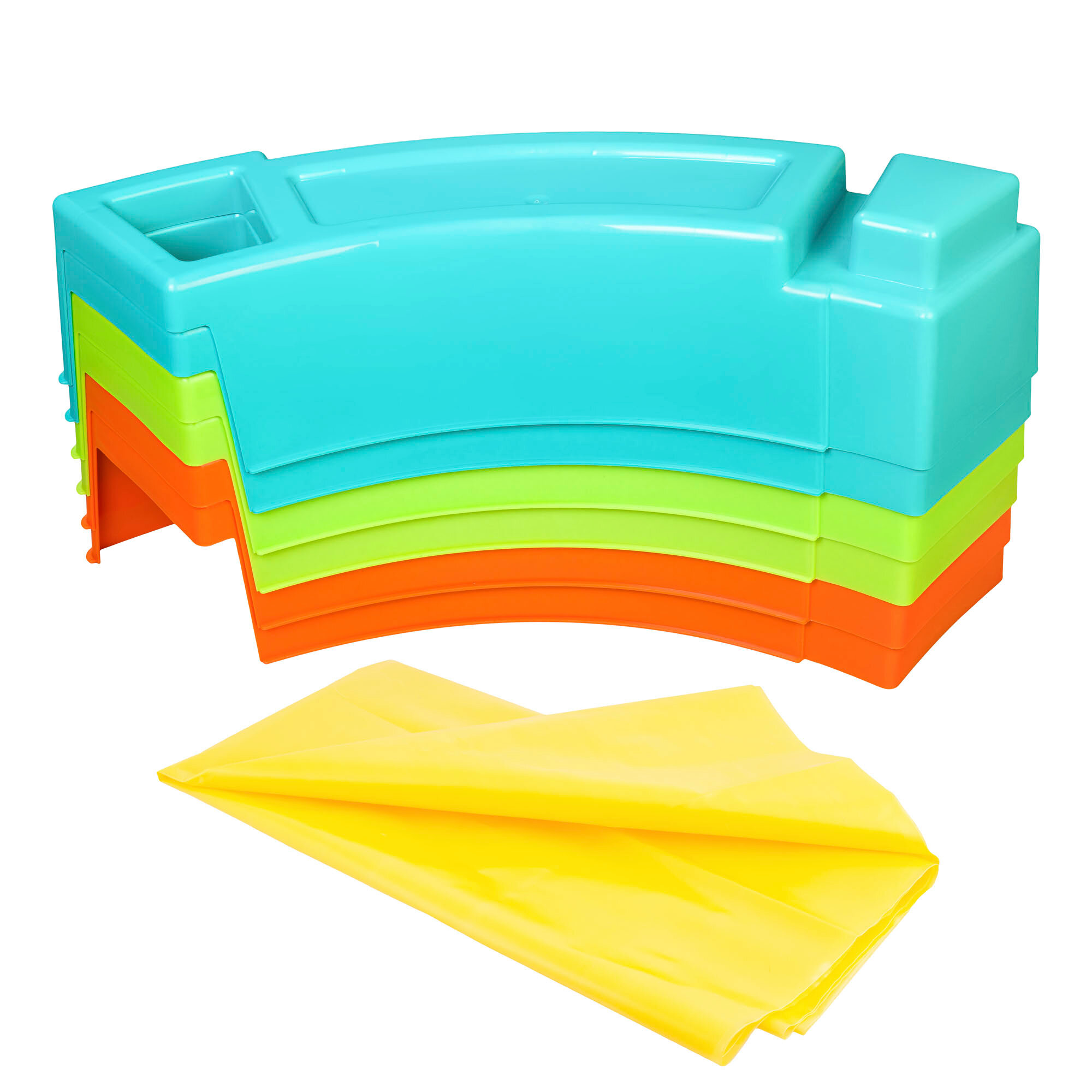 Детская пластиковая модульная песочница для улицы и дома, сборная разборная из 8 сегментов для игр с песком и шариками, цвет бирюзово-серый