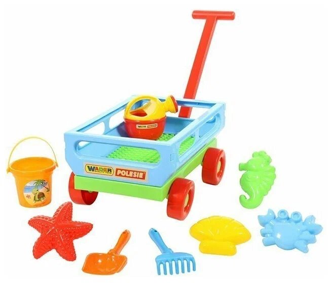 Отзывы на Тележка Полесье 45751, 4 колеса, с набором игрушек, для песочницы и дома.