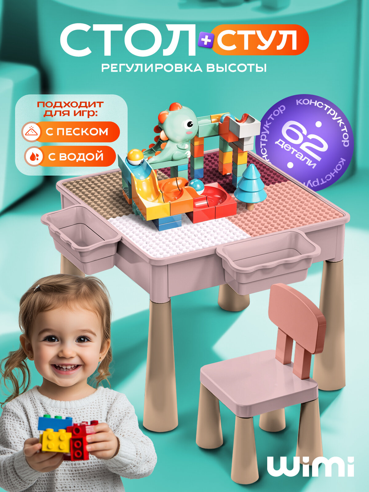 10 цен на Столик детский , со стульчиком и конструктором, для игр с водой и песком