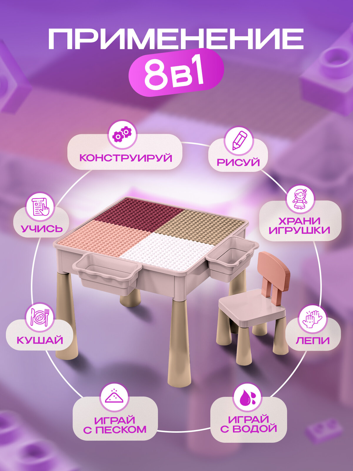 Столик детский , со стульчиком и конструктором, для игр с водой и песком информация: