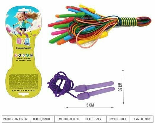 | Дополнительная информация | Скакалка длиной 2,7 м, подходит для занятий спортом, изготовлена из пластика и нейлона, имеет удобные рифленые ручки для лучшего хвата, подходит для использования как в помещении, так и на улице. |