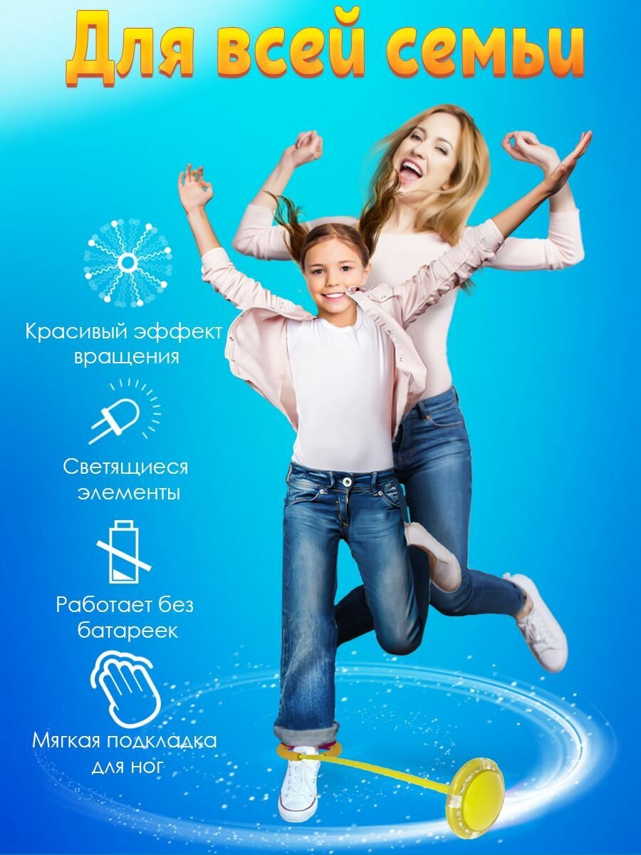 10 цен на Нейроскакалка светящаяся желтая, скакалка на одну ногу со светодиодным роликом, 60 см Ball Masquerade
