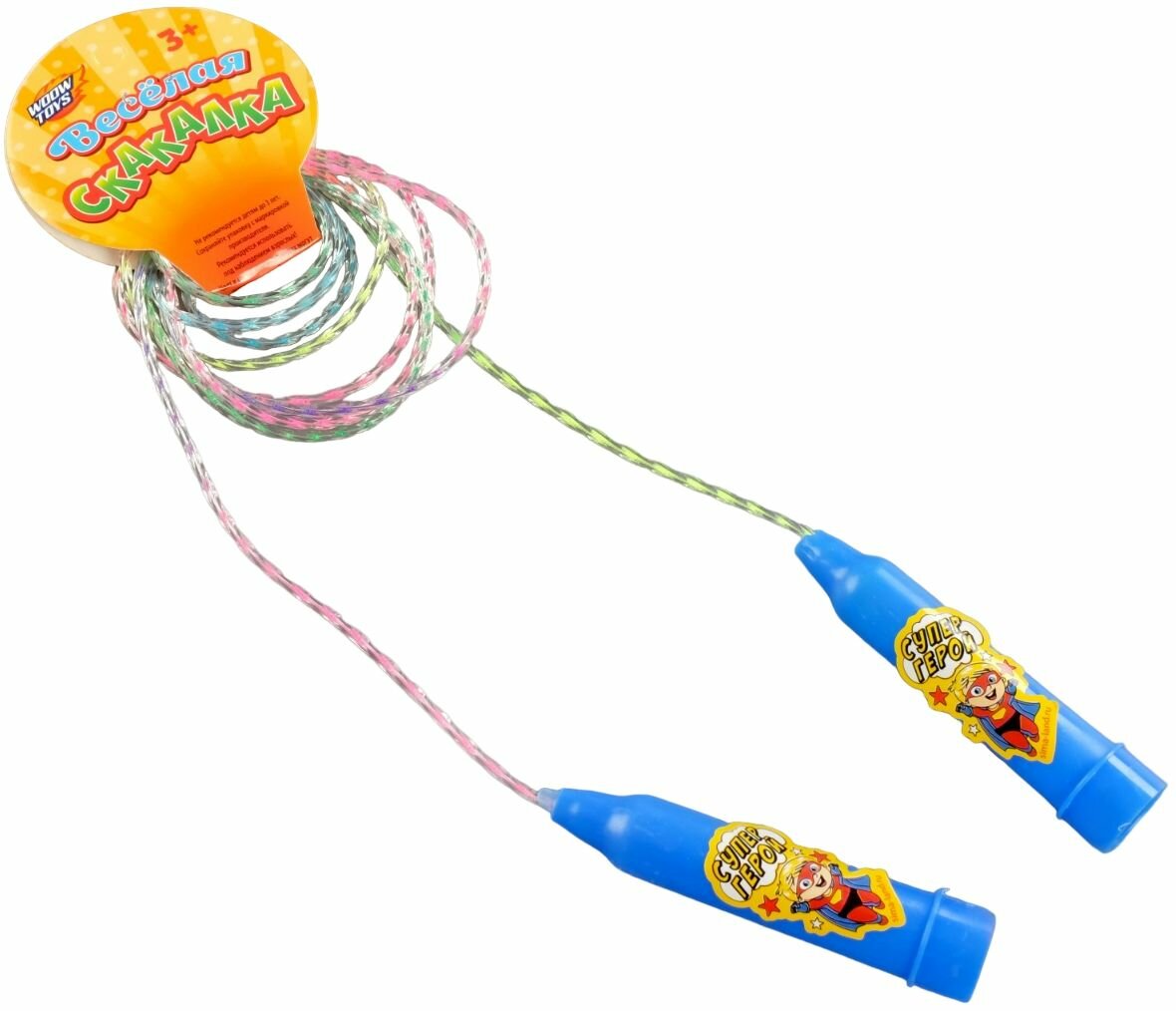 Скакалка детская спортивная "Супер герой", для гимнастики, подвижных игр дома и на улице, цвет синий информация: