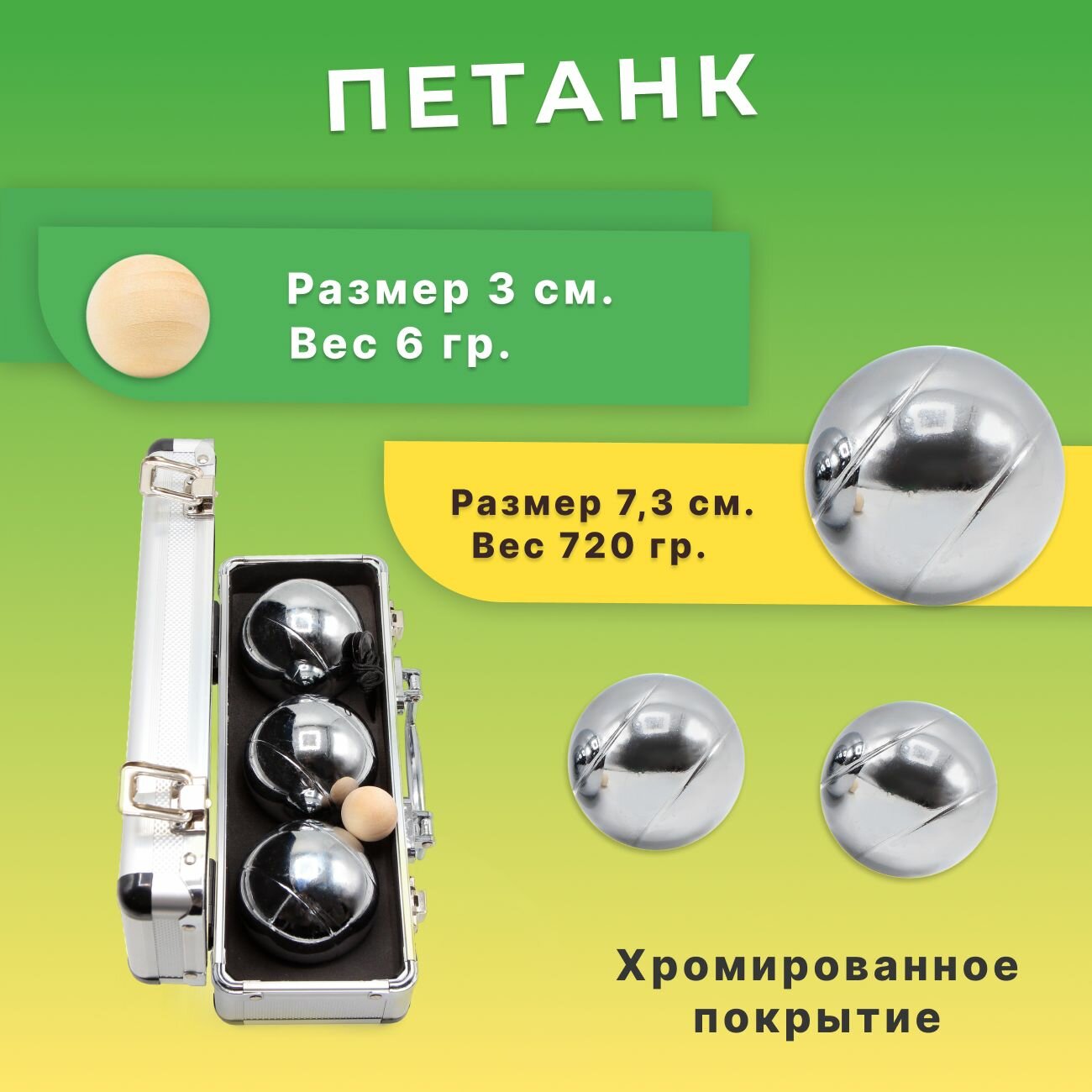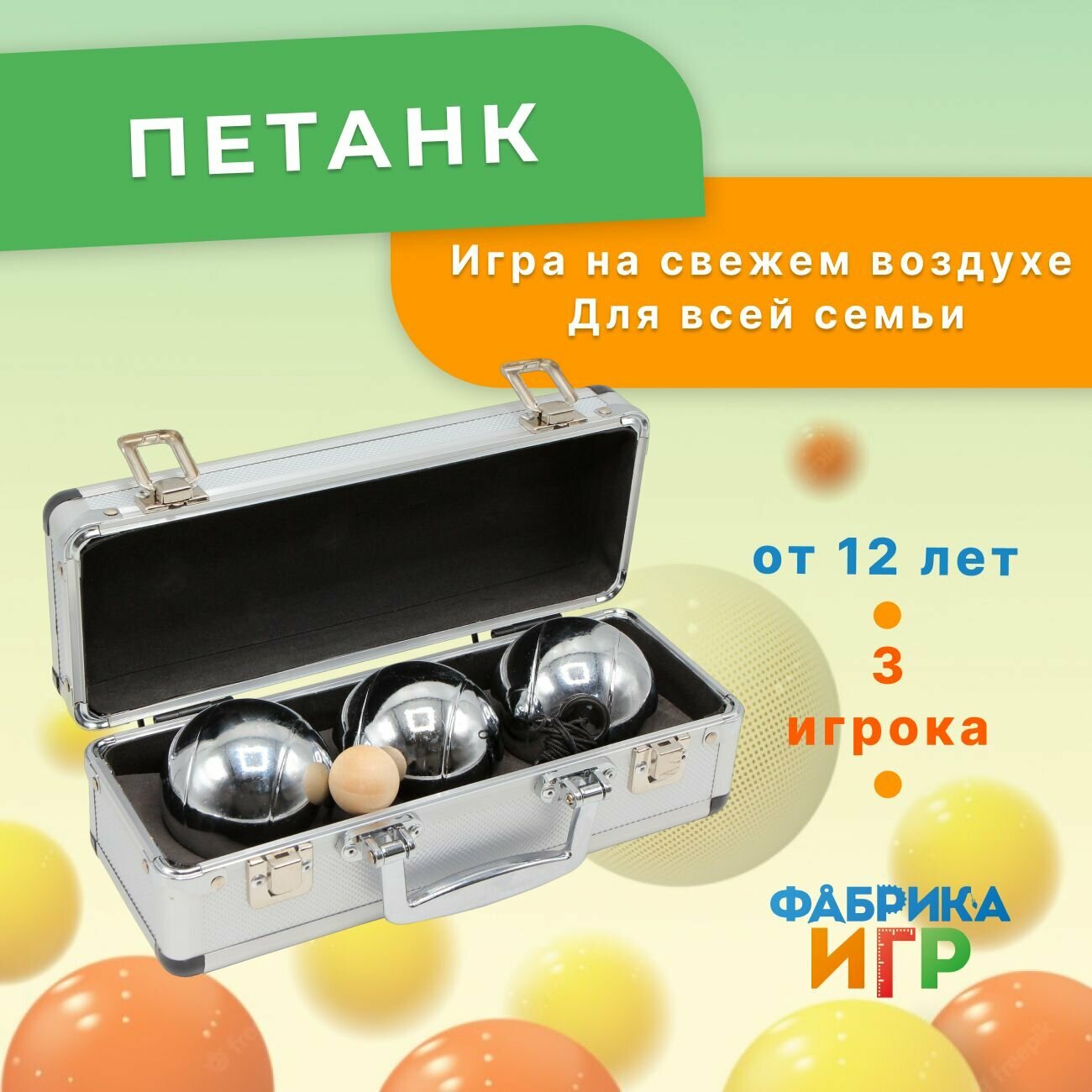 Фабрика Игр: Спортивная игра для улицы Петанк 3 шара в кейса / Бочче для компании информация: