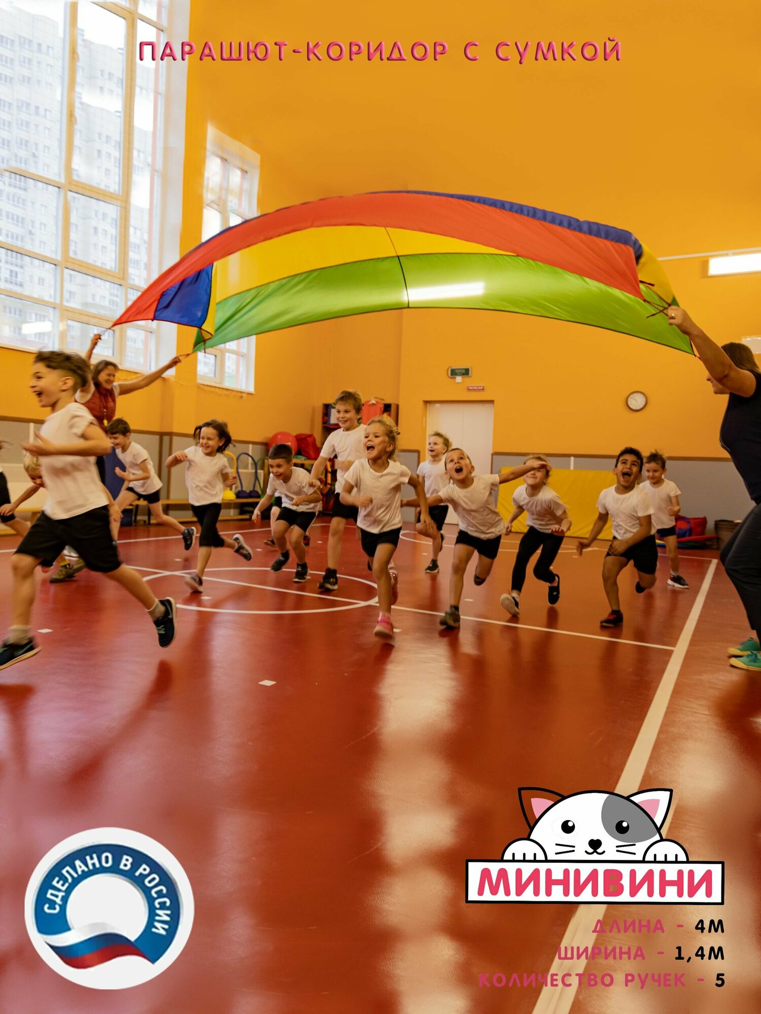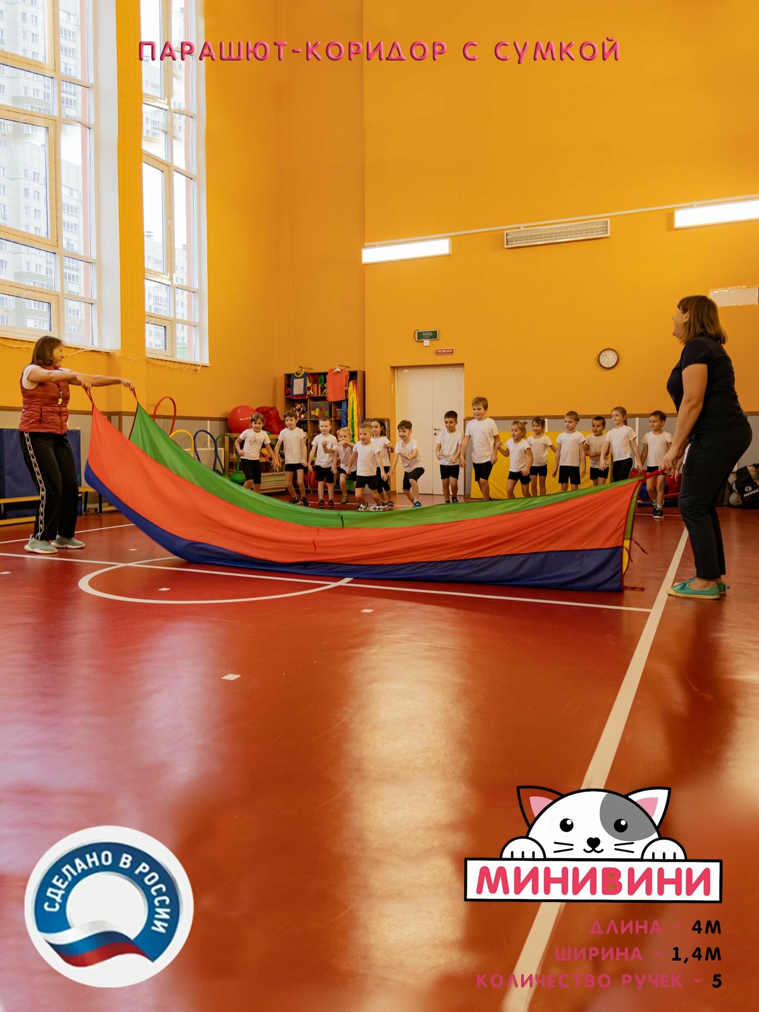 Отзывы на Парашют-коридор с сумкой для спортивных игр и эстафет (4 м) 4 цвета минивини