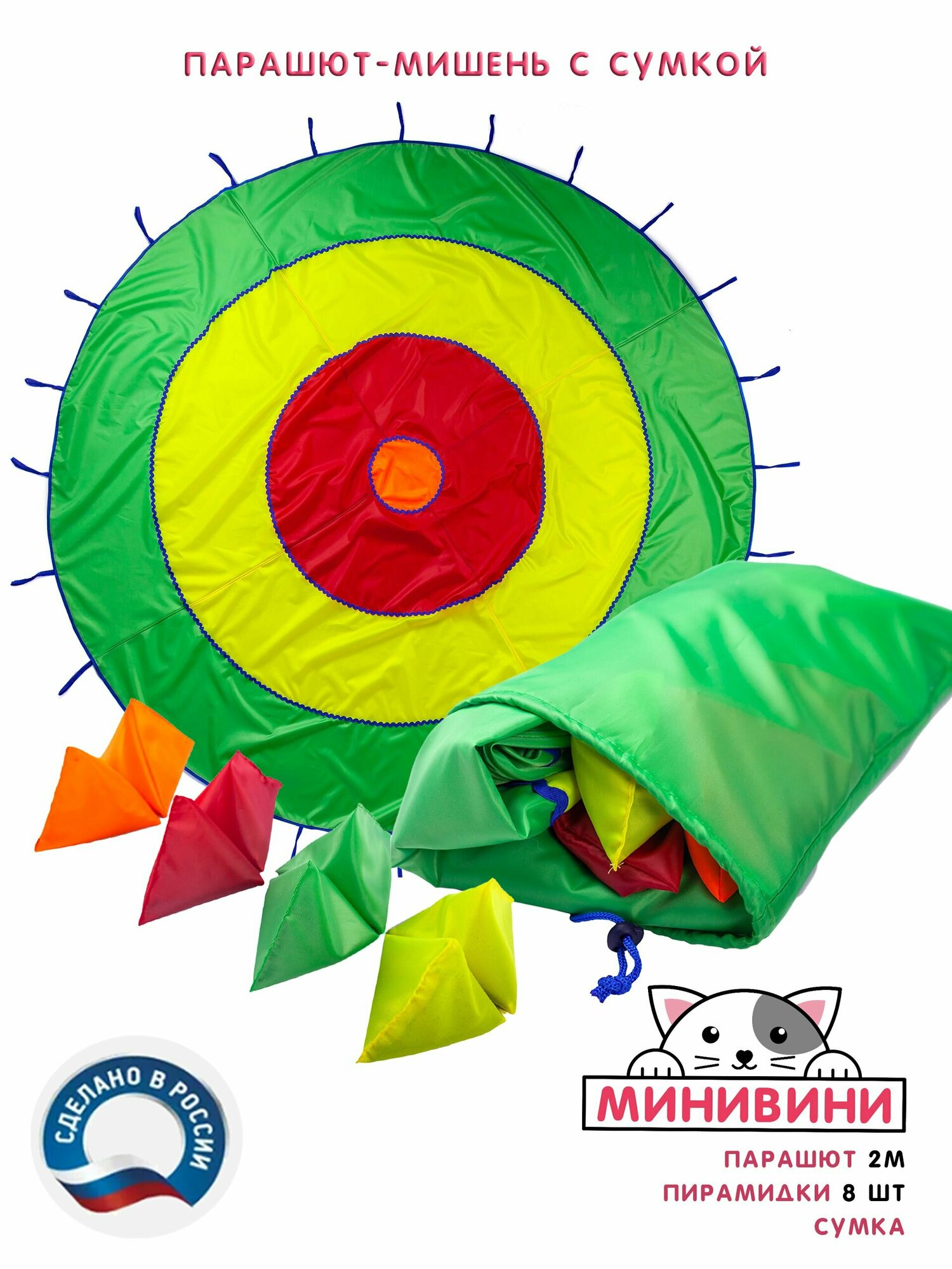 Отзывы на Детский спортивный товар Парашют-мишень с сумкой для спортивных игр и эстафет минивини