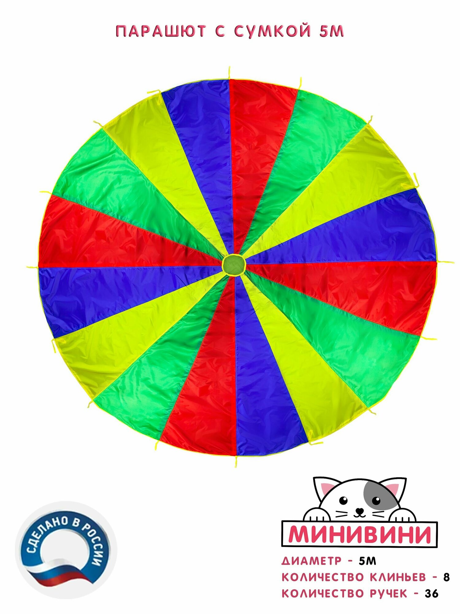 Детский спортивный товар Парашют (5 м) с сумкой для спортивных игр и эстафет минивини информация: