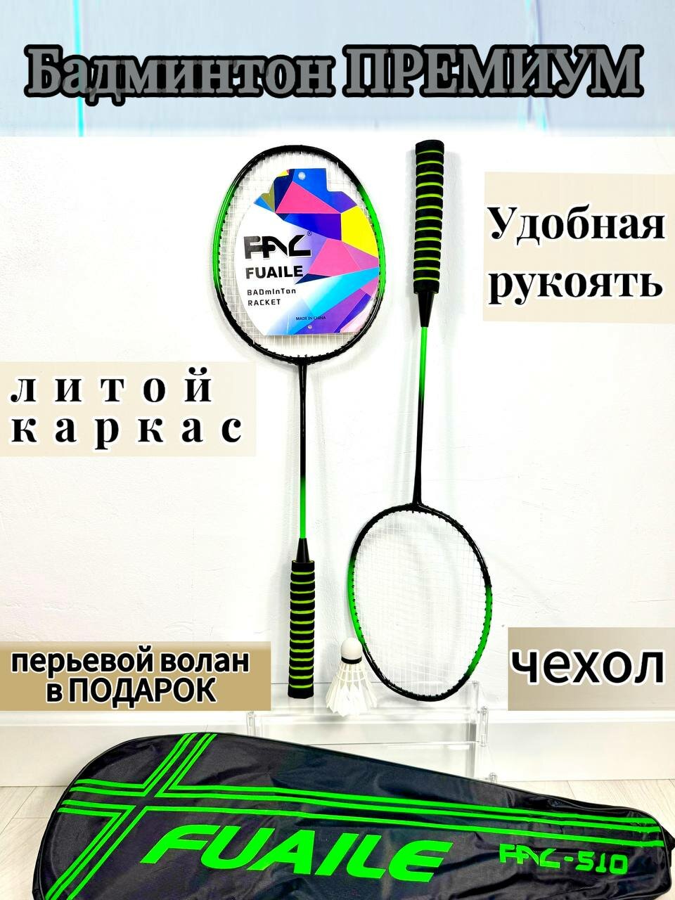 Набор Бадминтон зеленый в чехле с воланом информация: