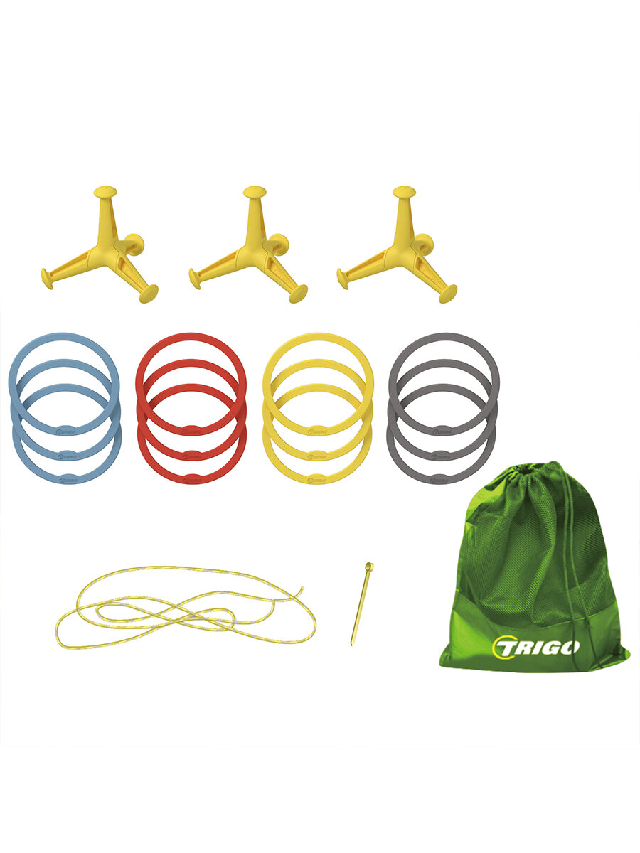 | Комплектация | 3 треногих колышка, 12 разноцветных колец для набрасывания (синие, красные, желтые и серые) и сумка |
