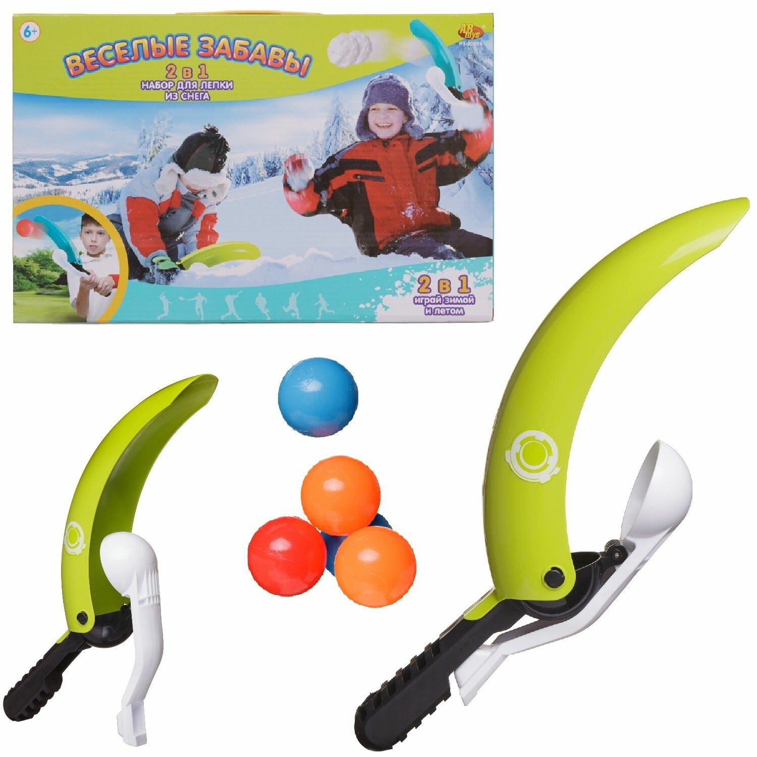 Снежколеп ABtoys Зимние забавы из 5 снежков, диаметр 6 см, 4 цвета