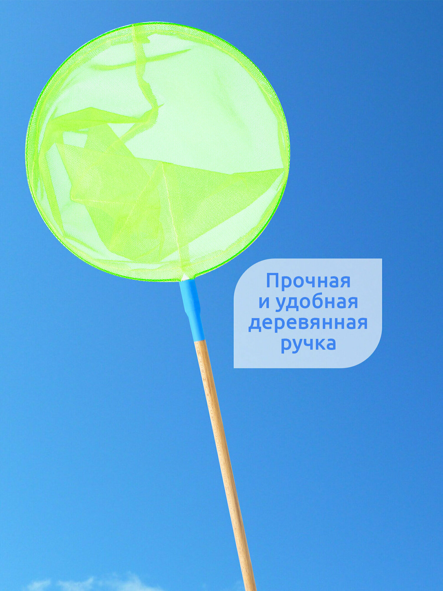 Сачок детский с деревянной ручкой из бука Мега Тойс для ловли бабочек, чистки бассейна, рыбалки информация: