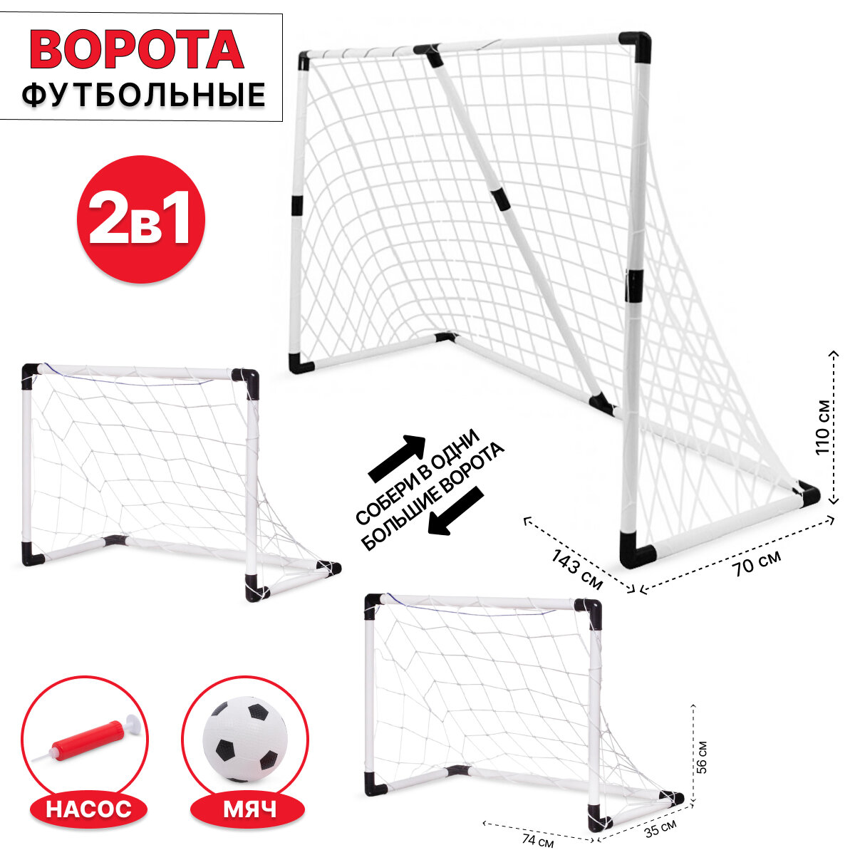| Дополнительная информация | двое ворот с размером 74х56х35 см., одни ворота с размером 143х110х70 см. |