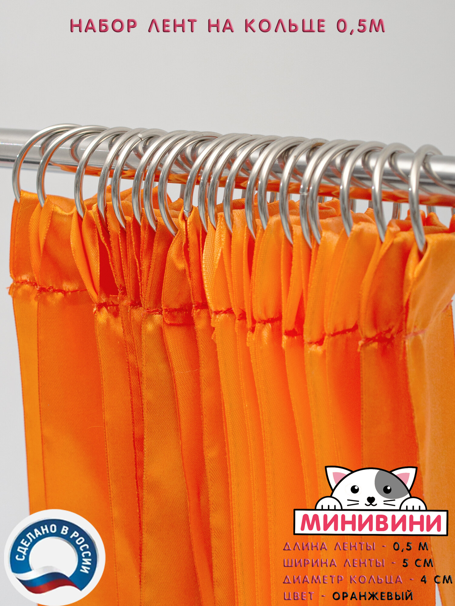 Набор Лента атласная на кольце (50 см) для эстафет оранжевая минивини информация: