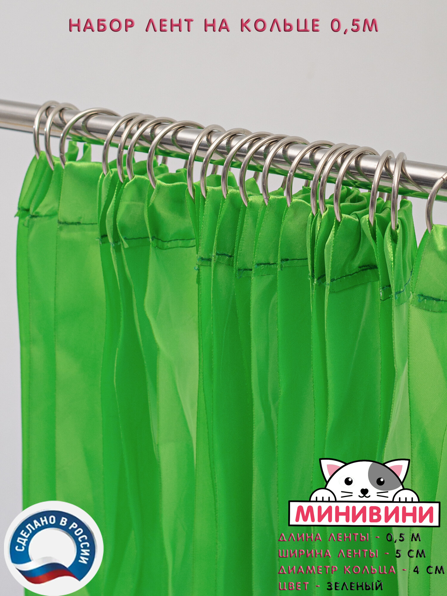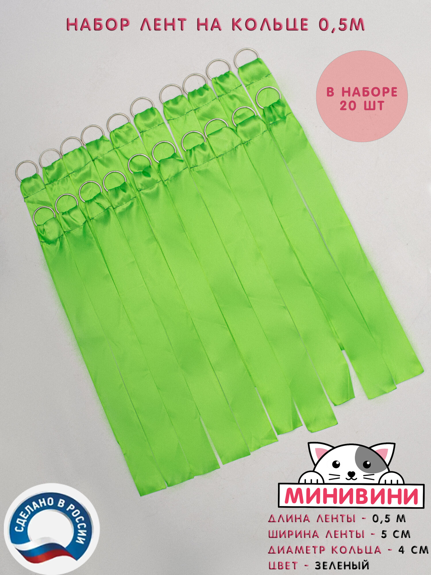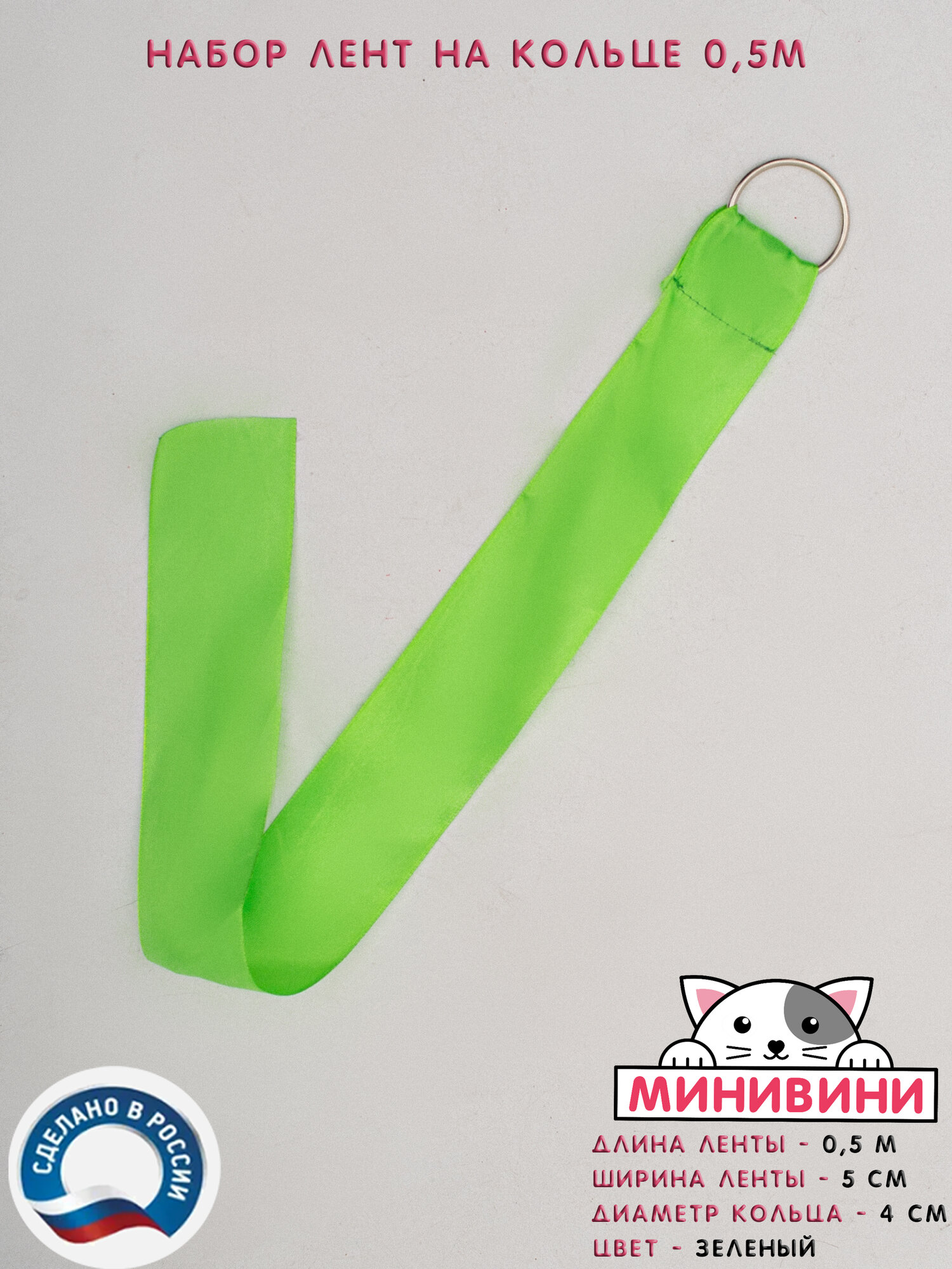 Набор Лента атласная на кольце (50 см) для эстафет зеленая минивини информация: