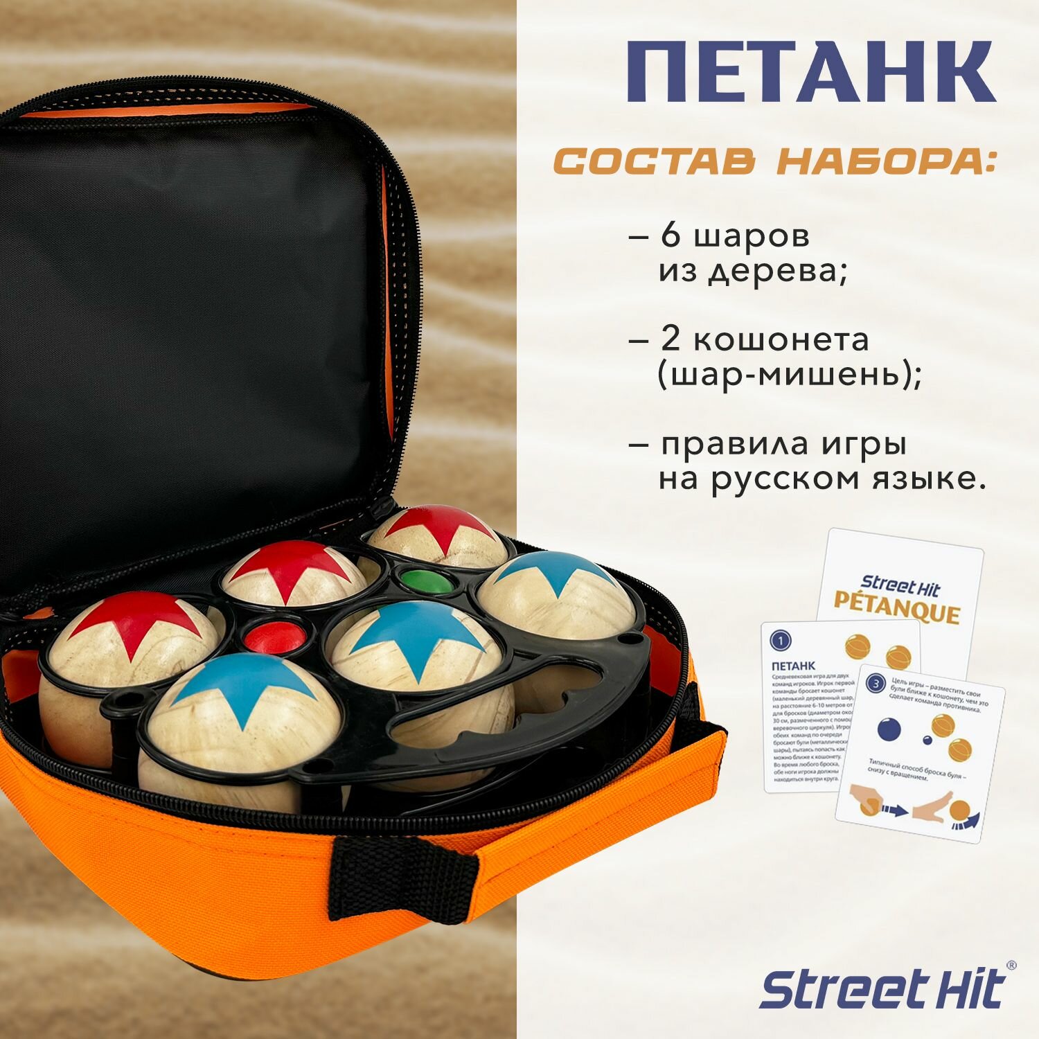 Набор для игры Street Hit Петанк, 6 шаров из дерева, красный+синий информация:
